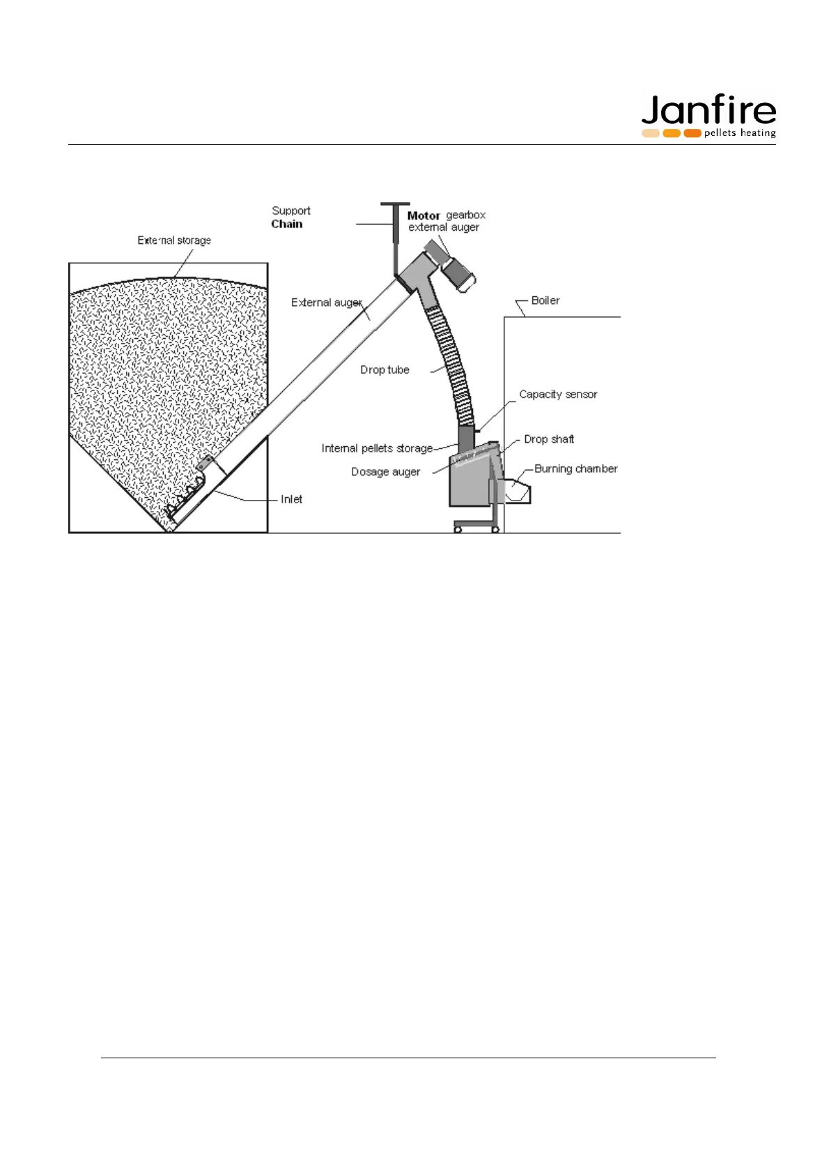 Pellet boiler and NH pellet burner system complete with fill auger and pellet storage.