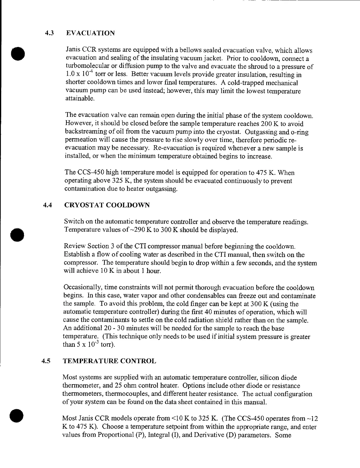 Most Janis CCR models operate from <10 K to 325 K. (The CCS-450 operates from —12