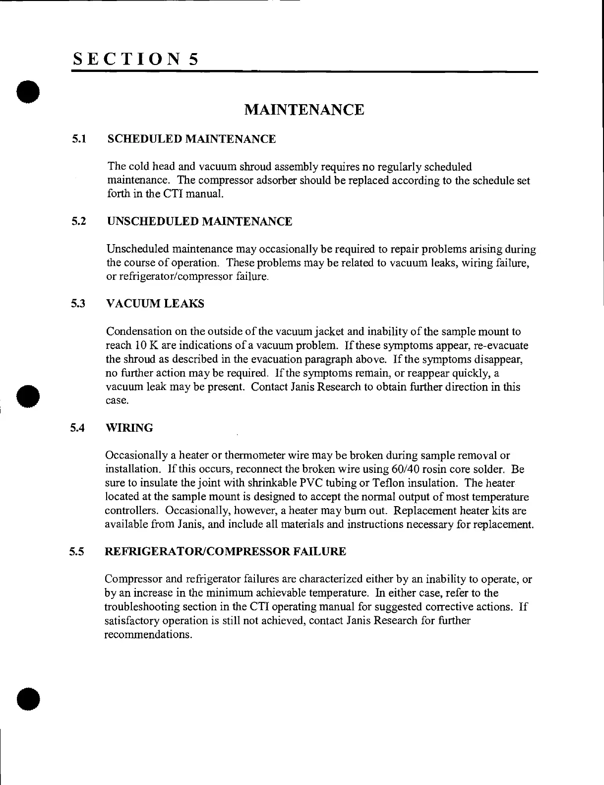 vacuum leak may be present. Contact Janis Research to obtain further direction in this
