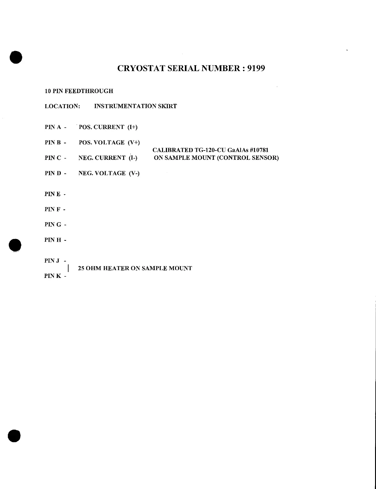 CRYOSTAT SERIAL NUMBER : 9199
