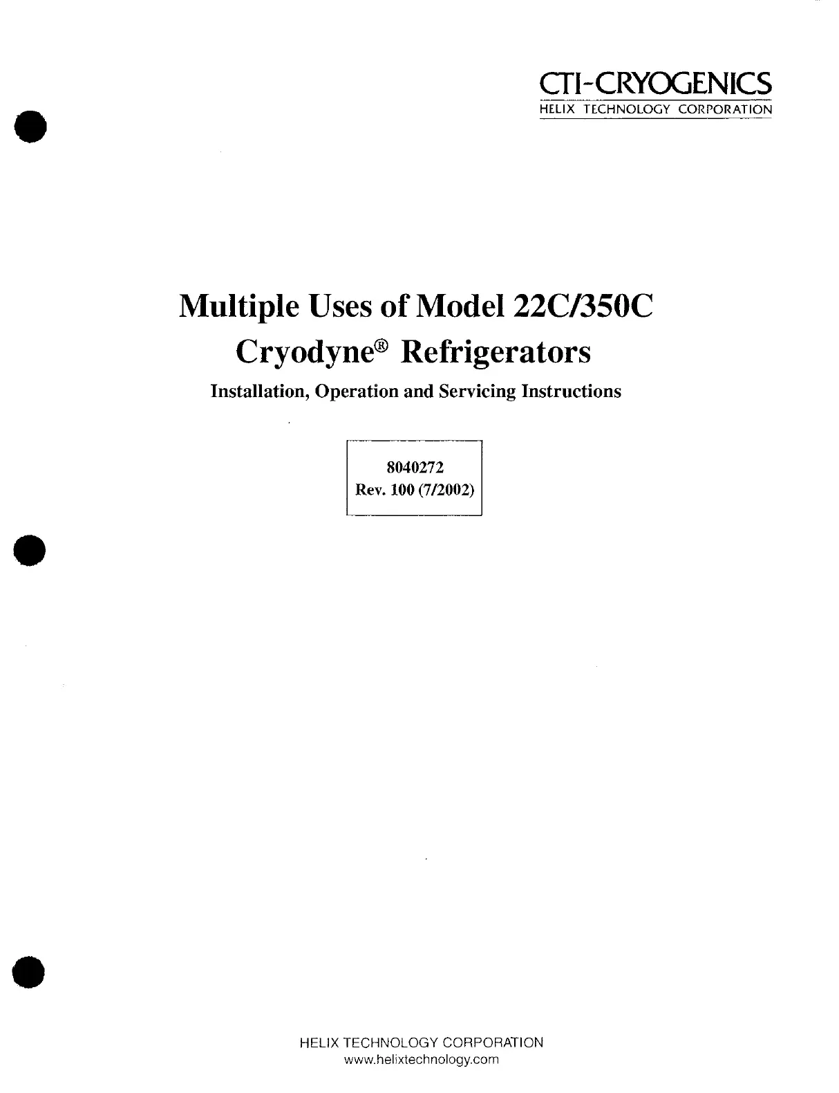 Janis CCS-150 - CTI Cryodyne Refrigerators Manual