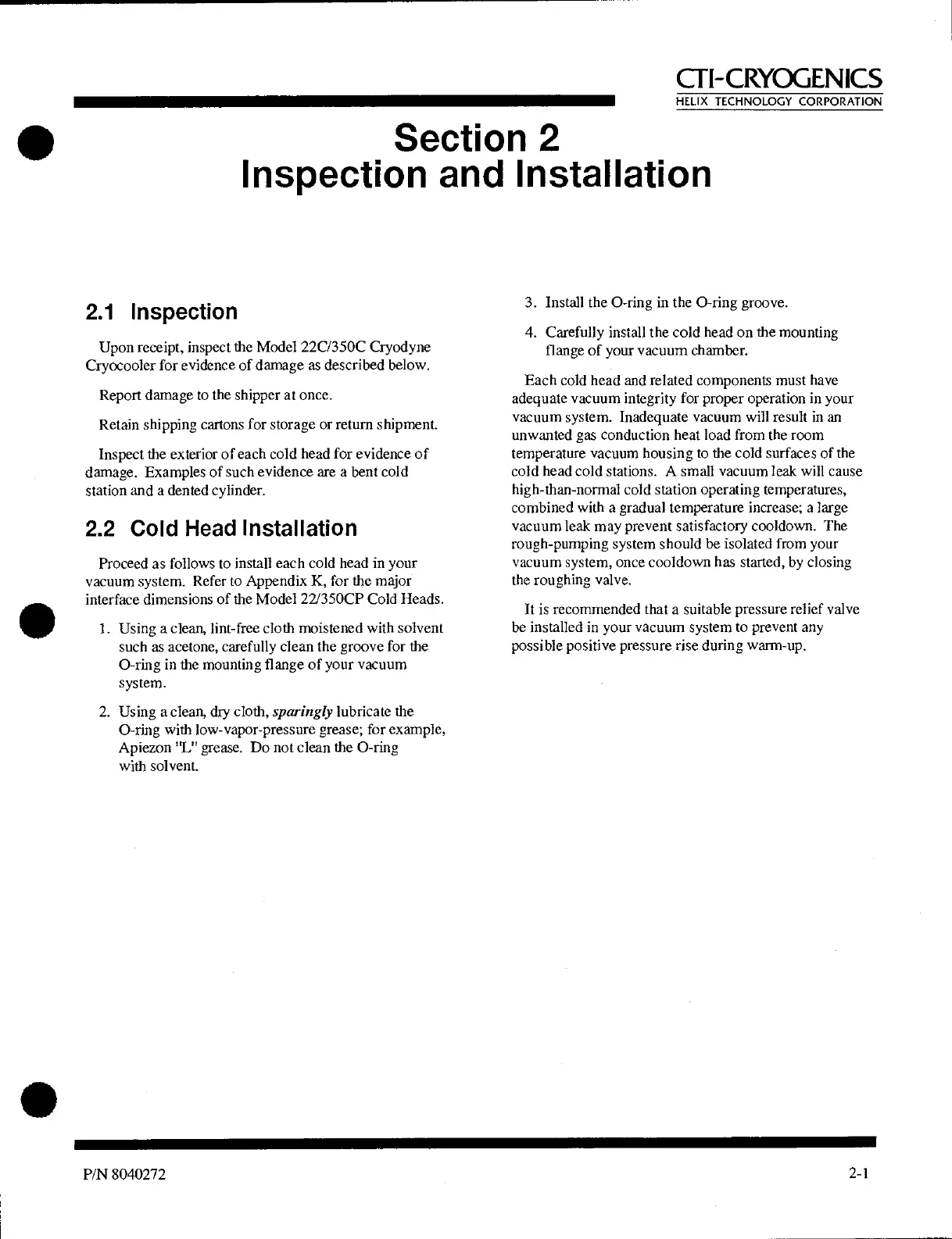 2.2 Cold Head Installation