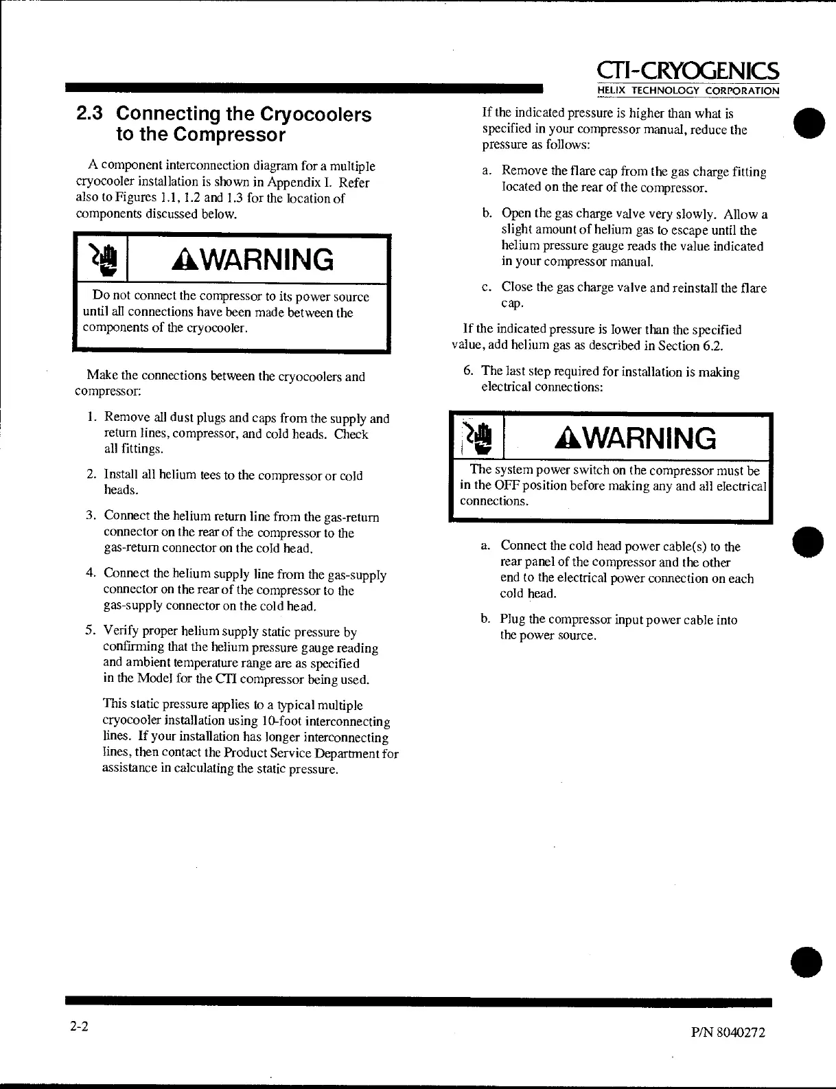 cryocooler installation is shown in Appendix I. Refer