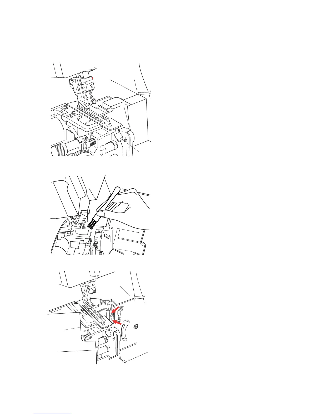 Remove the needle plate by pushing down its release