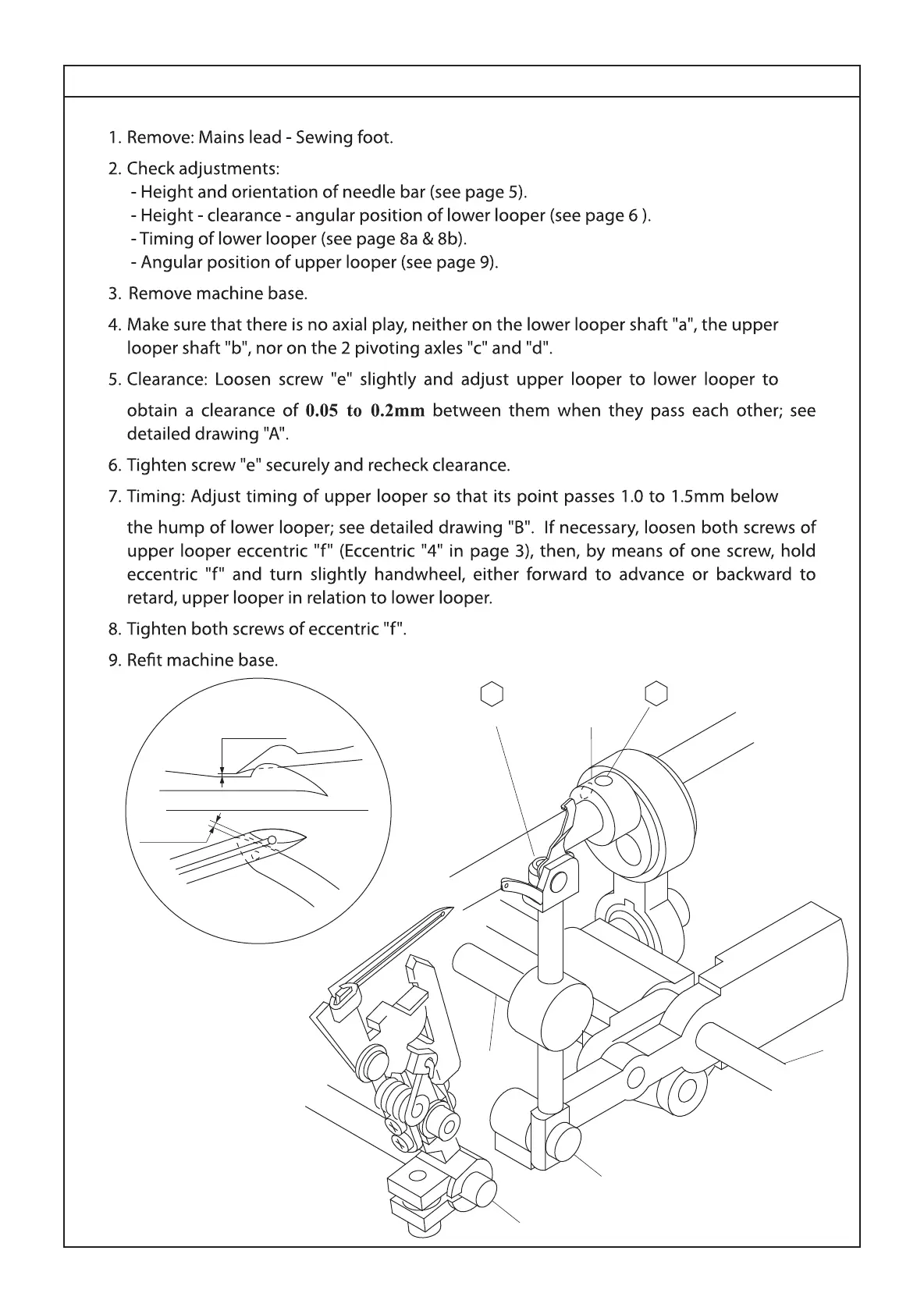 Janome 1200D - Clearance and Timing of Upper Looper to Lower Looper; Upper to Lower Looper Clearance; Upper to Lower Looper Timing