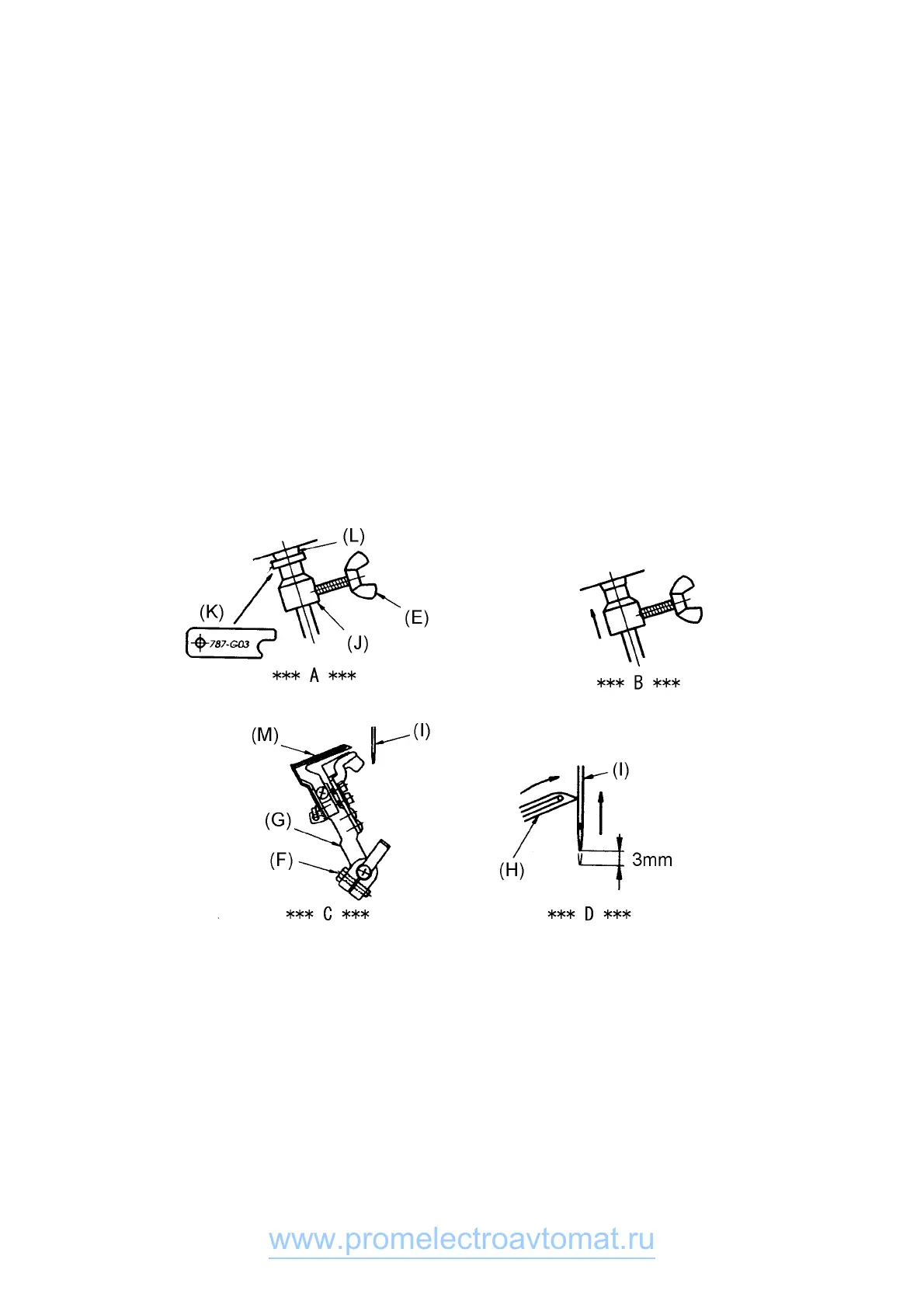 The clearance between the needle (A) and the fixed needle guard (B) should be 0.3 to 0.7mm