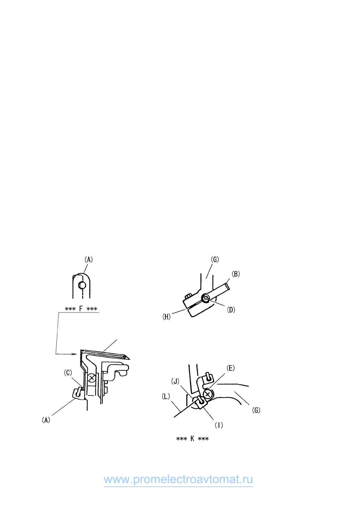 the side of looper thread take-up lever (I) comes over the center (L) of hole (J) as shown