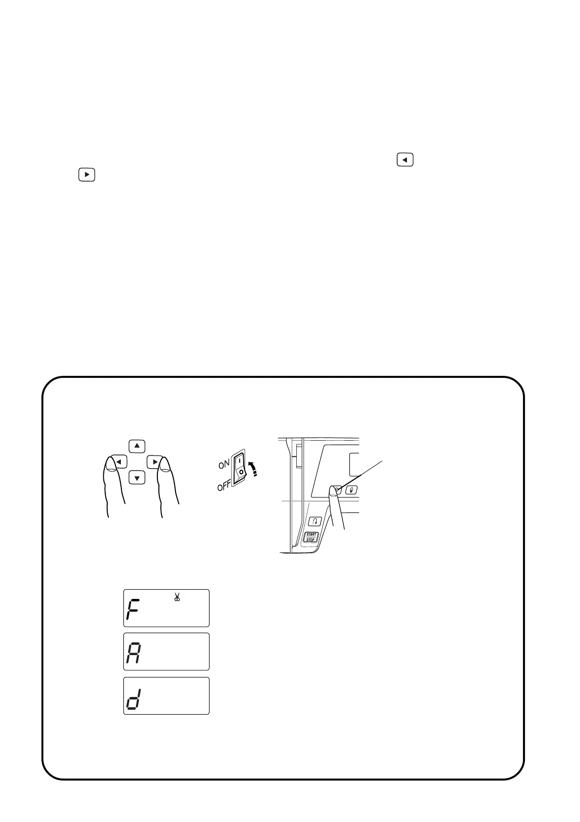 1. Turn the power switch on while simultaneously pressing left cursor button “ ” and the right cursor
