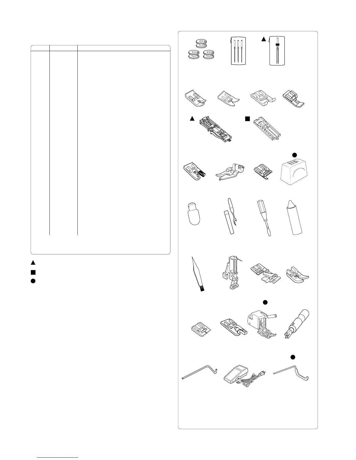 *These items are not furnished with the machine, but may be ordered