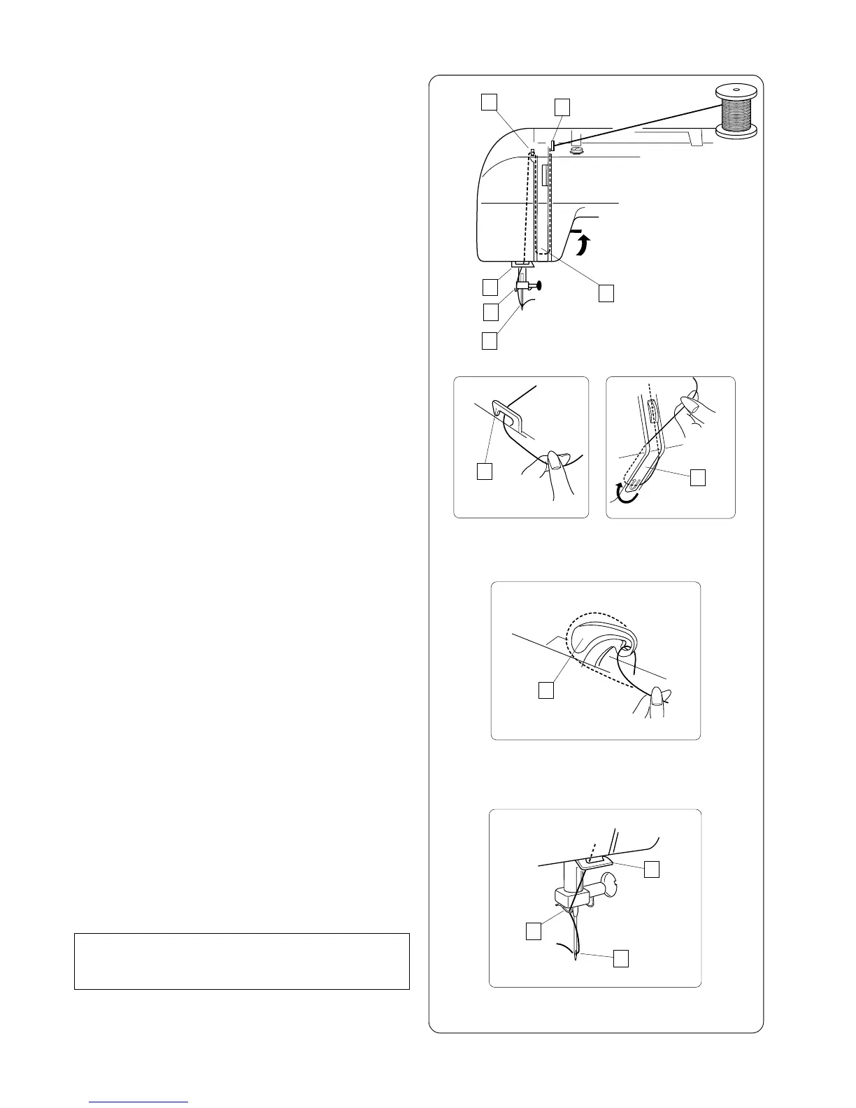 [5]Draw the thread down and slip it into needle bar thread