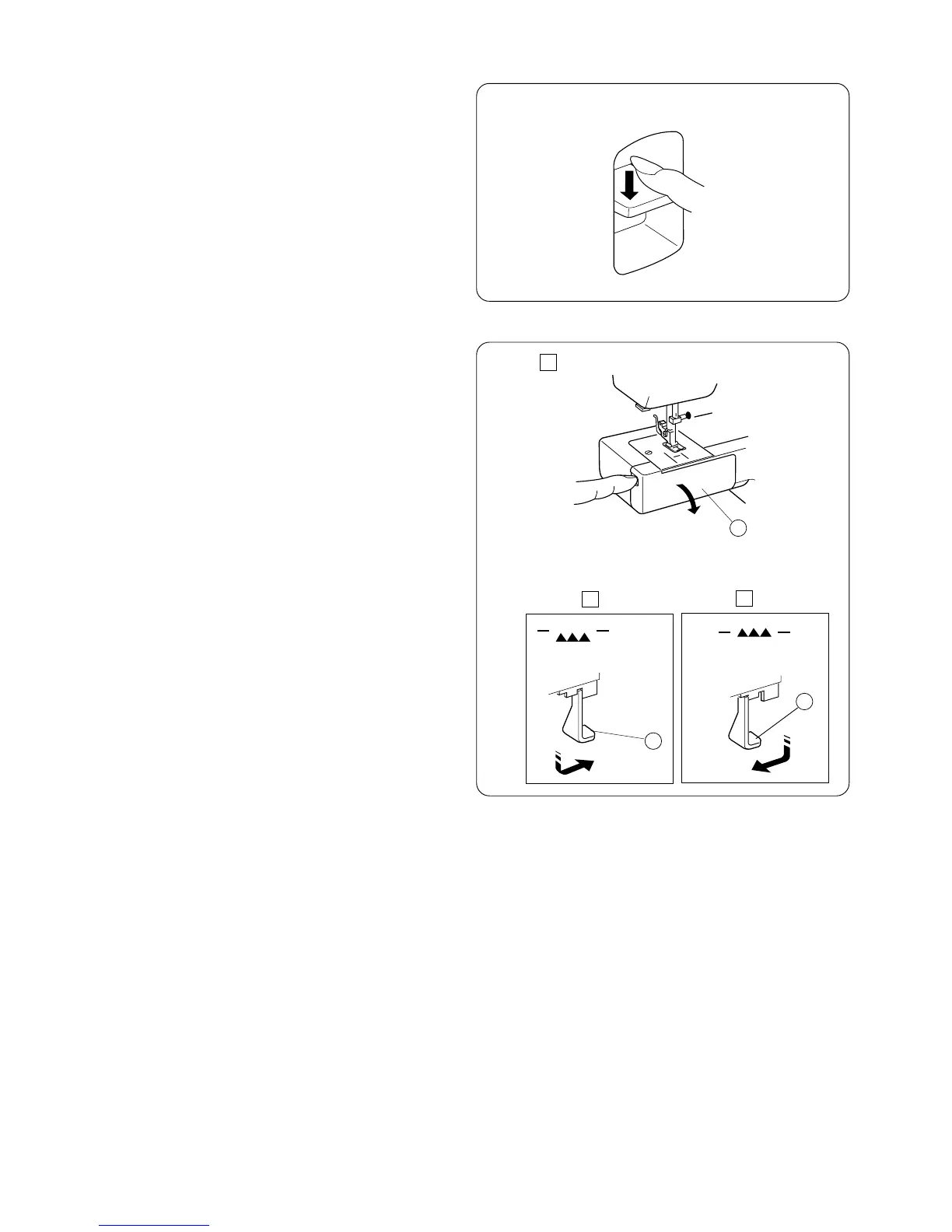 [3] To raise the feed dog, pull down the drop lever and