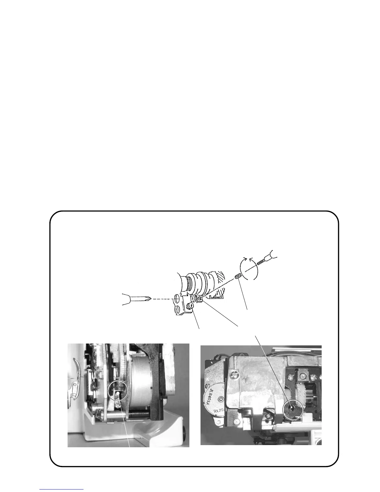 3. Turn hexagonal socket screw to adjust the feed dog (should be parallel to the surface of the needle plate).