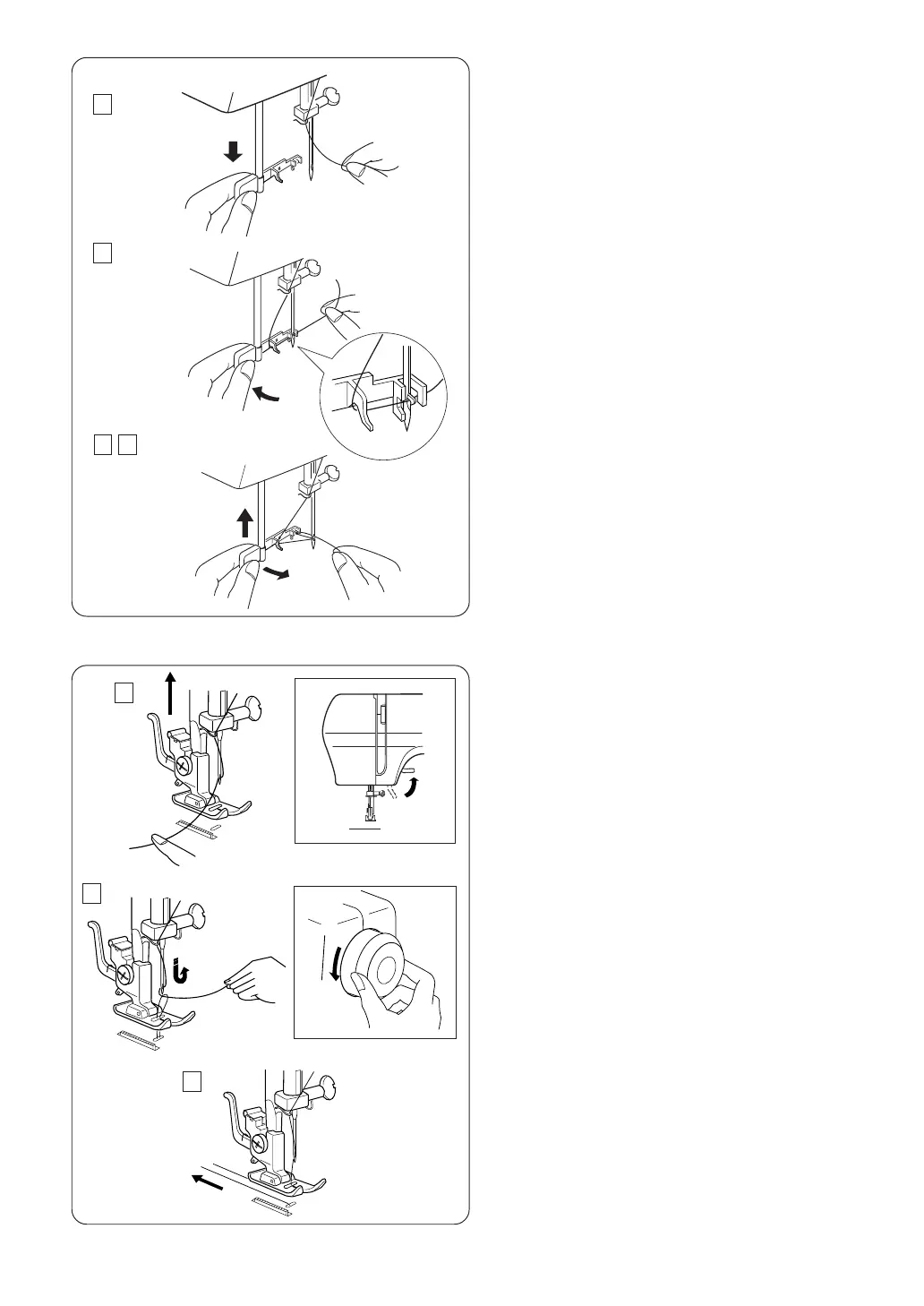 illustration, drawing the thread loop through the needle.