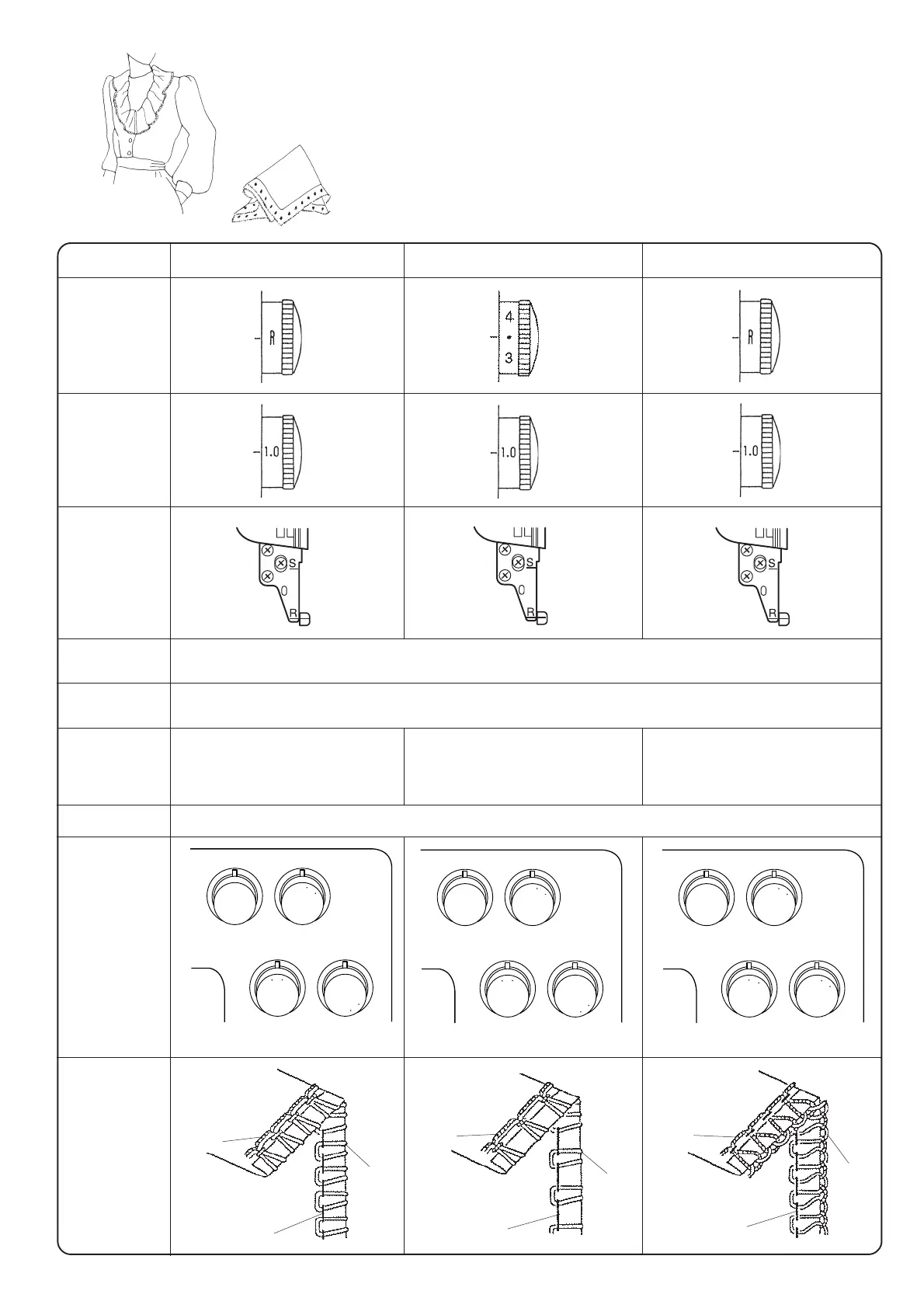 Graduación de la máquina, el hilo, la tela y el alcance del regulador de