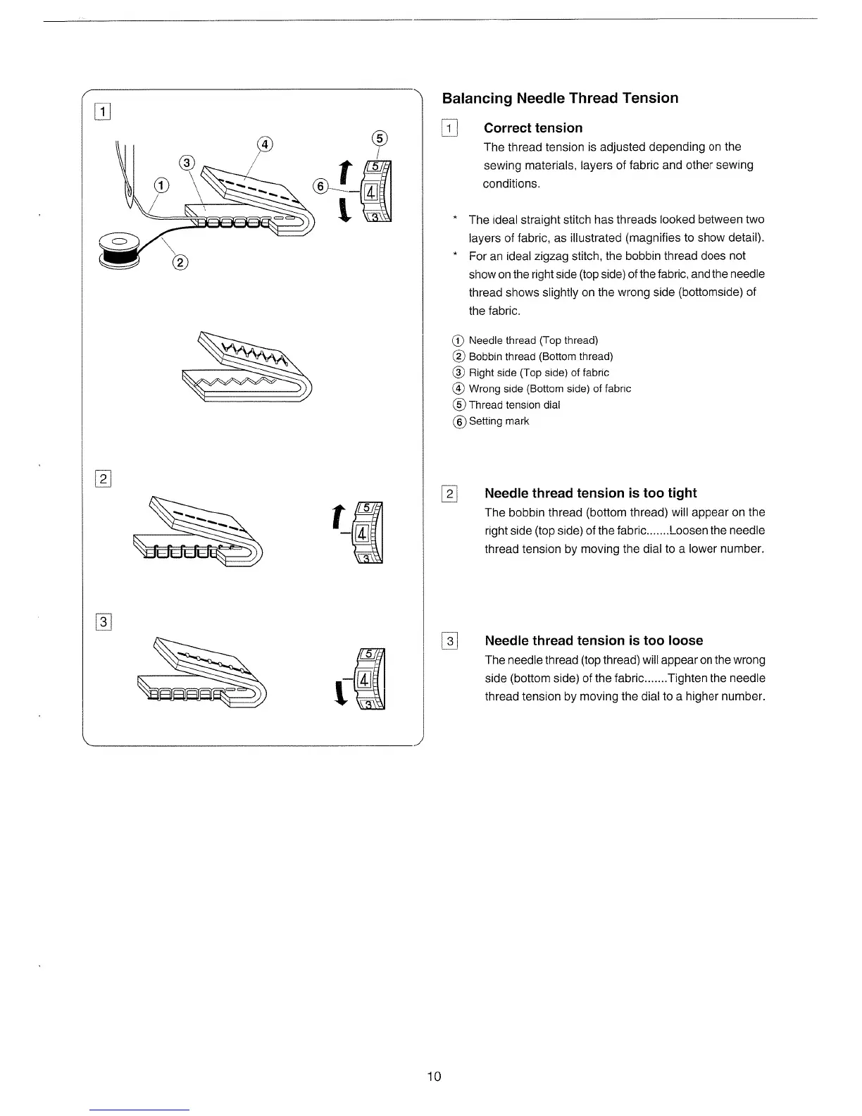 Janome 405 - Needle Thread Tension Adjustment; Correct Thread Tension; Adjusting Too Tight or Too Loose Tension