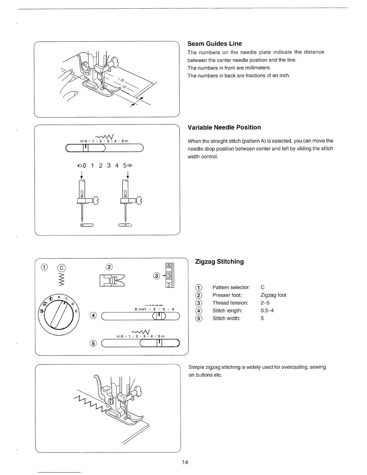 Janome 405 - Seam Guides Line; Variable Needle Position; Zigzag Stitching