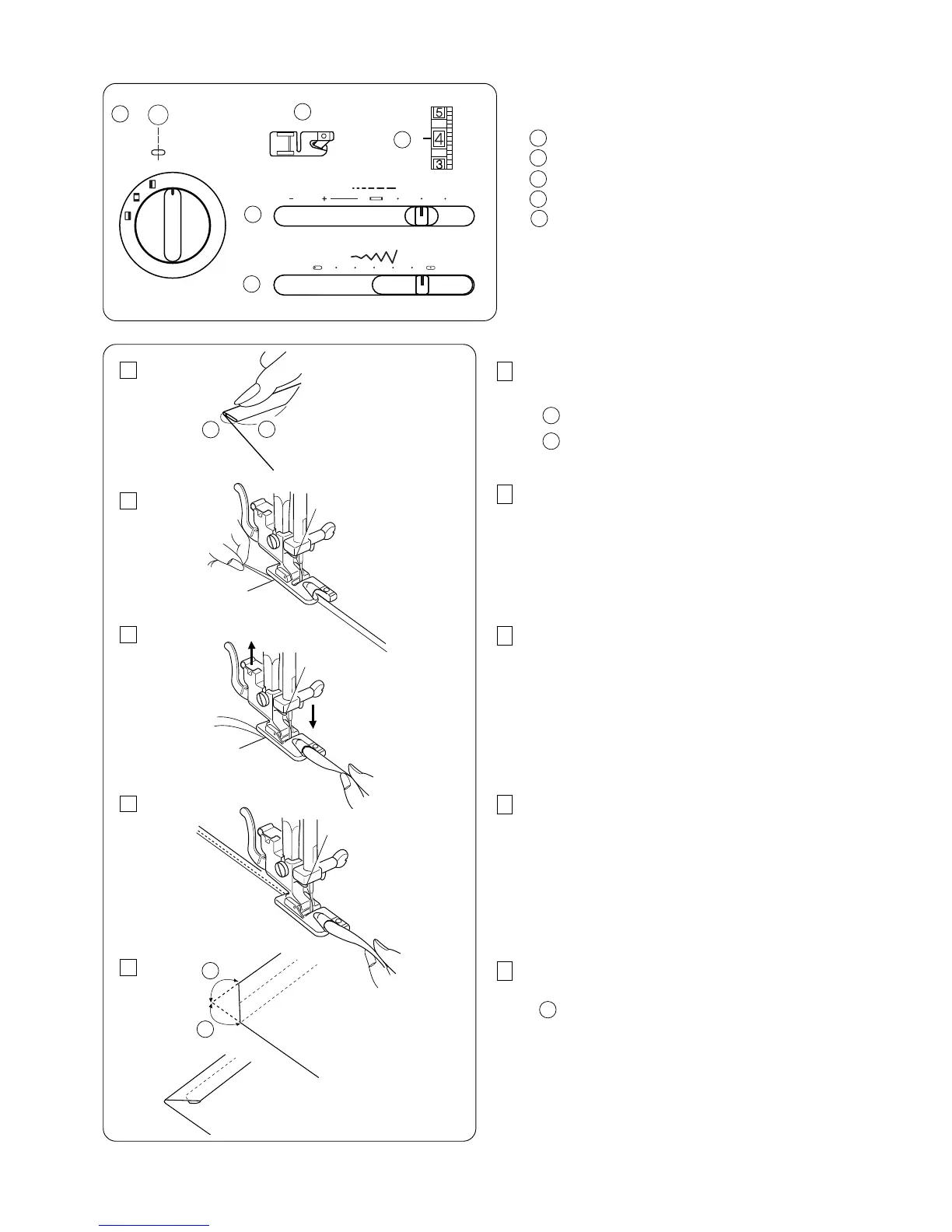 4 Lower the hemmer foot, then sew by lifting up the edge