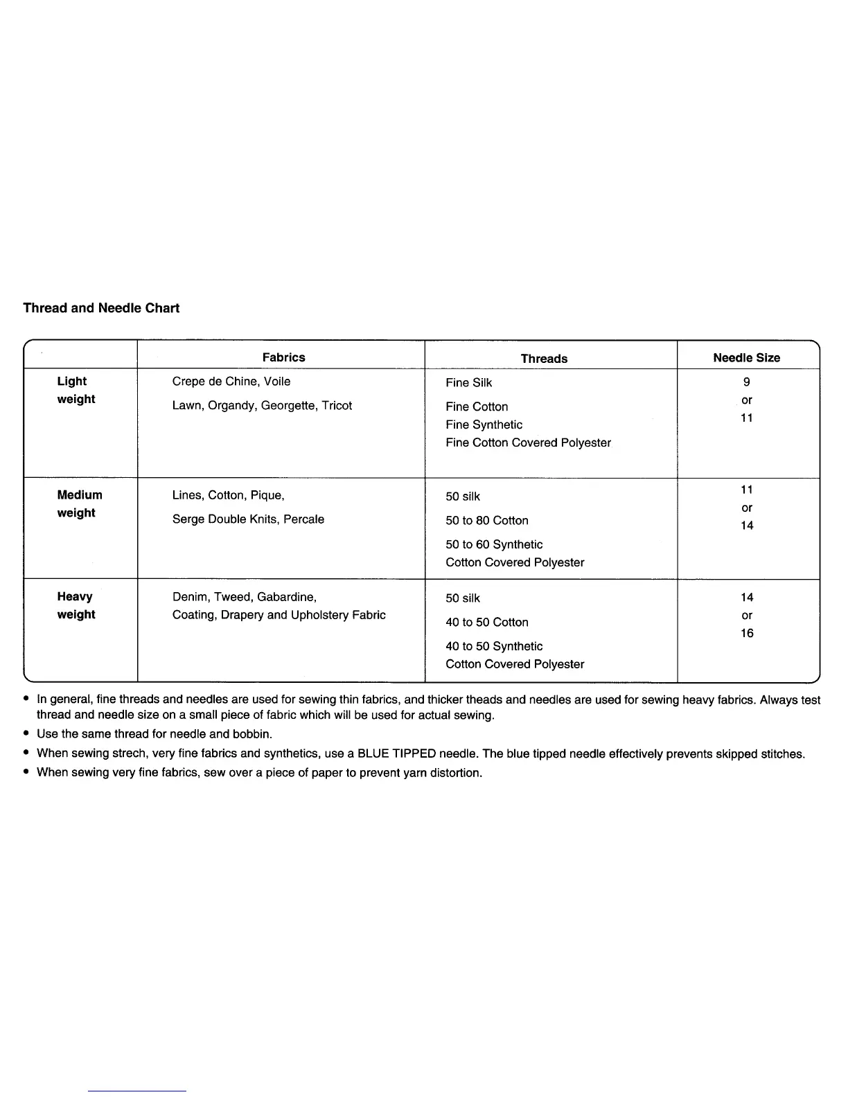 Janome 4623LE PLUS - Thread and Needle Chart