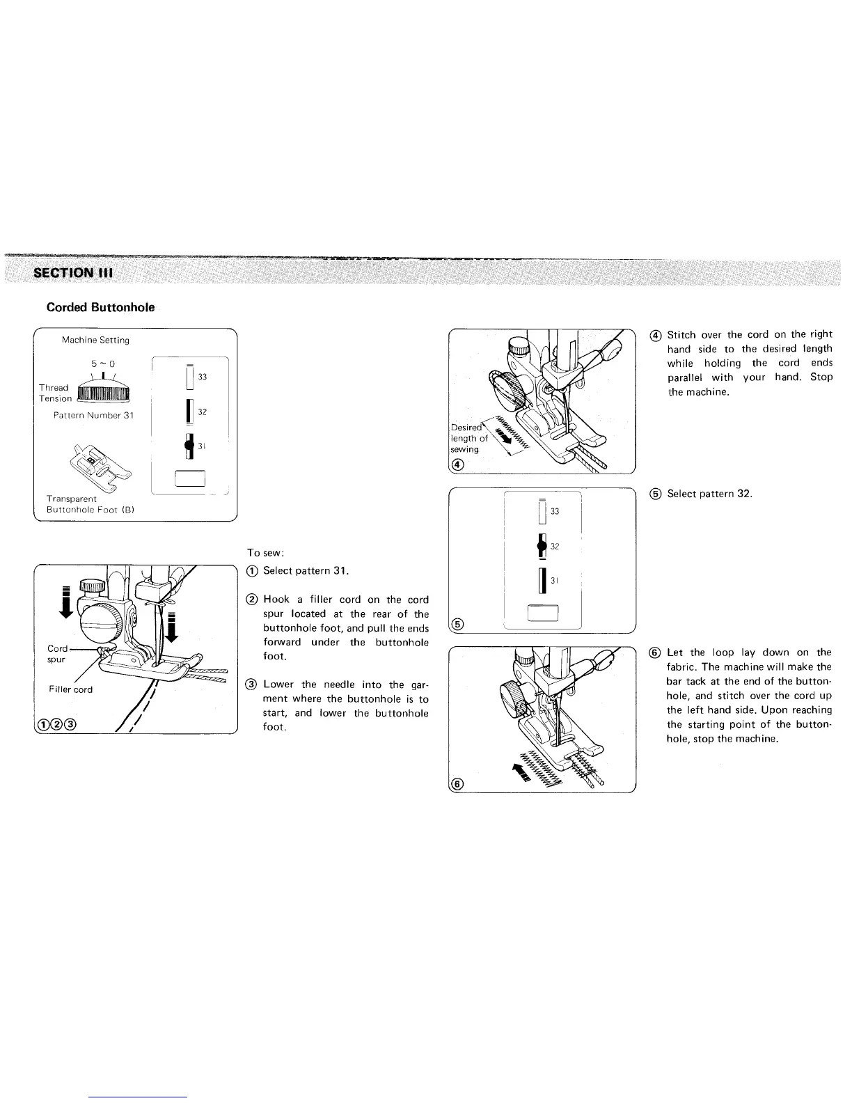 Janome 5001 Memory - Corded and Adjusted Buttonholes