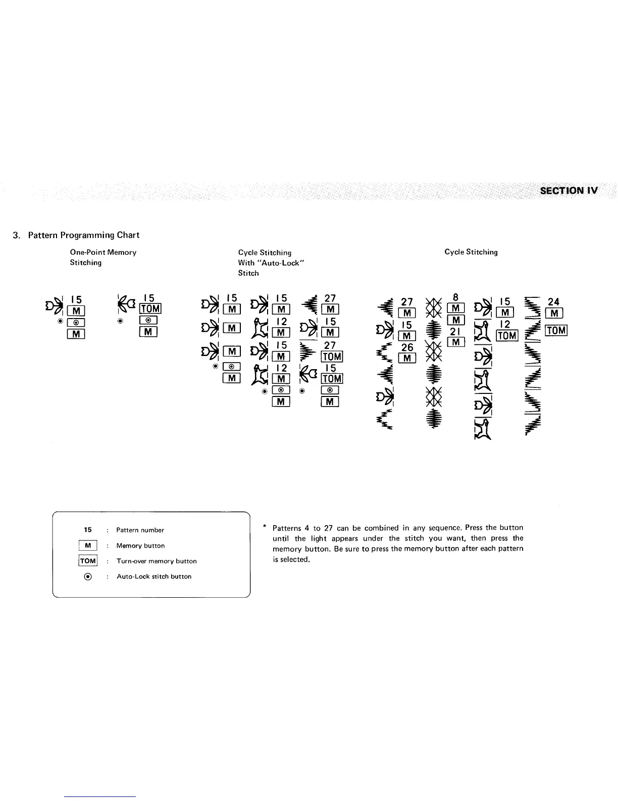 Janome 5001 Memory - Pattern Programming Chart