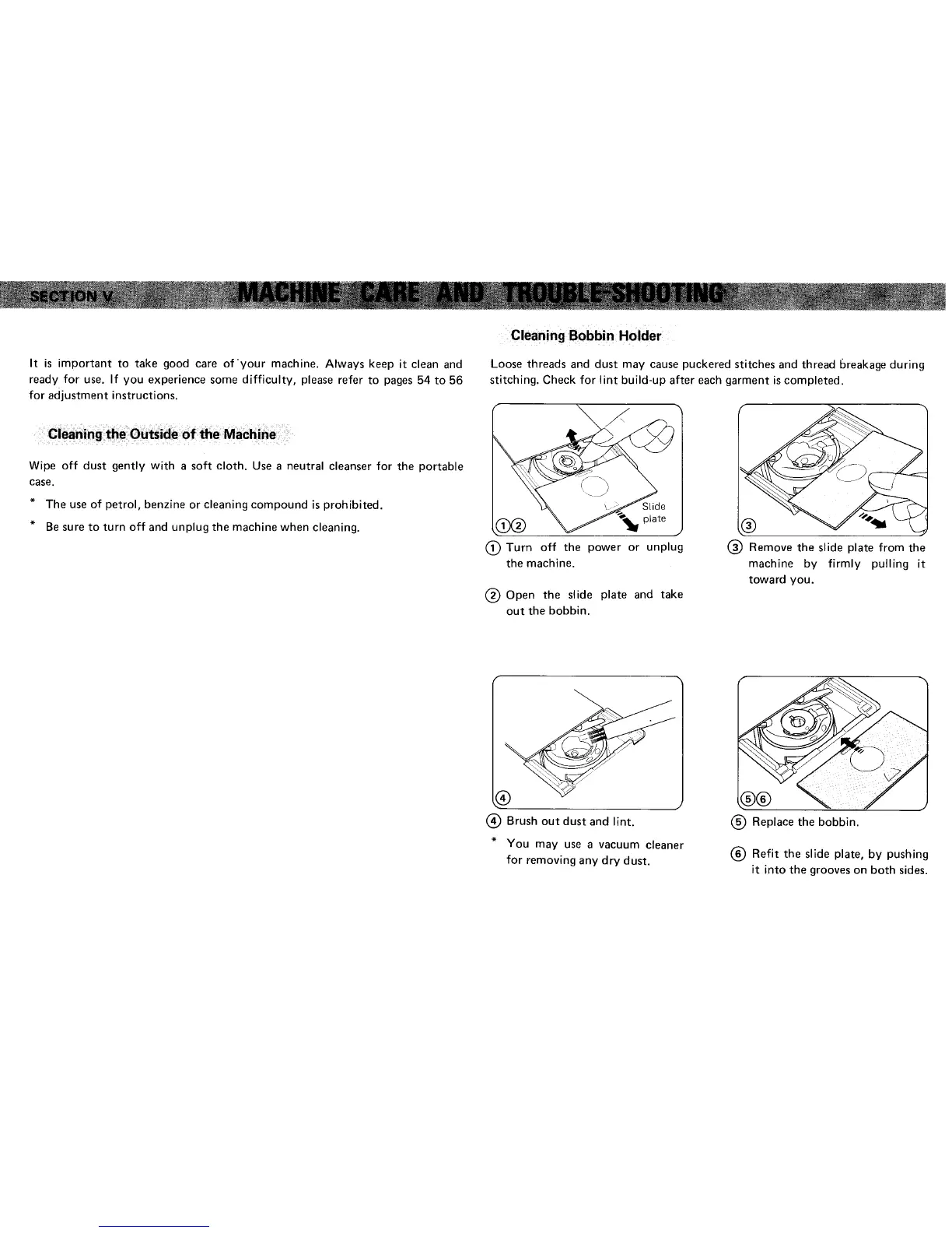 Janome 5001 Memory - Machine Care; Cleaning the Outside of the Machine; Cleaning Bobbin Holder