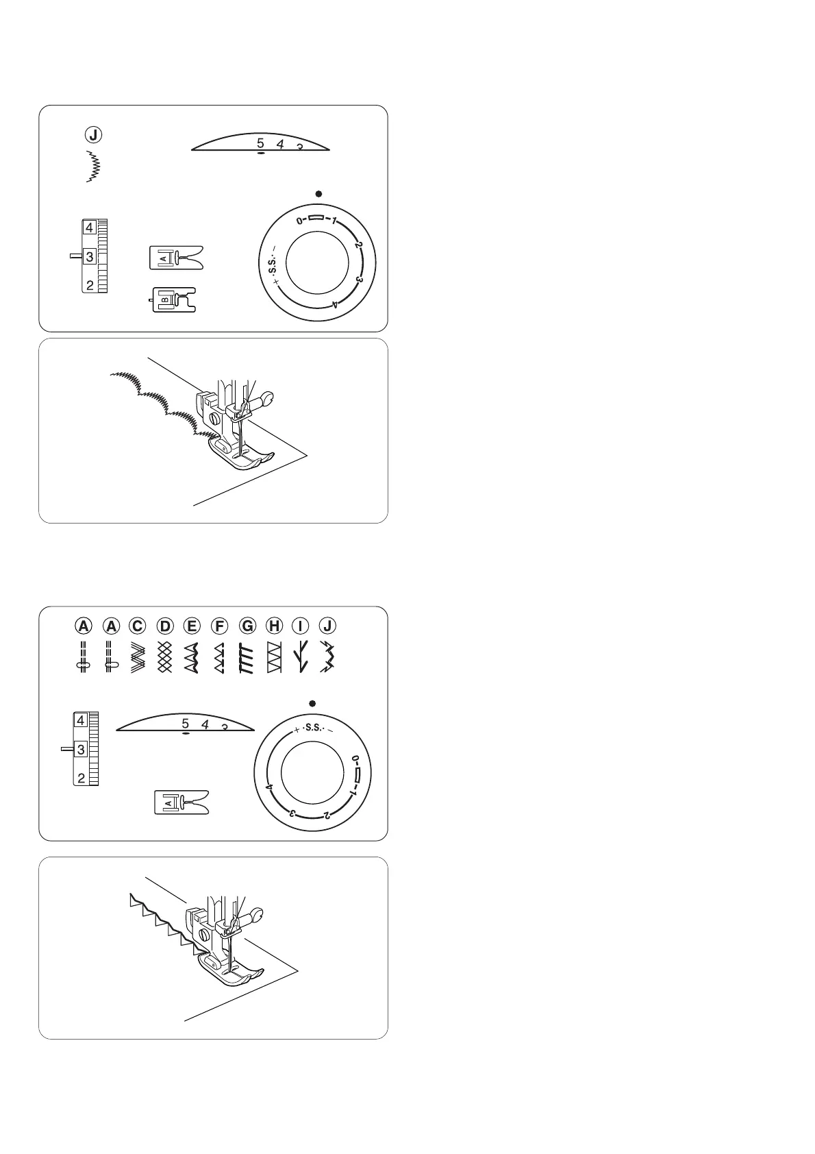 t Presser foot: Zigzag foot A or Buttonhole foot B