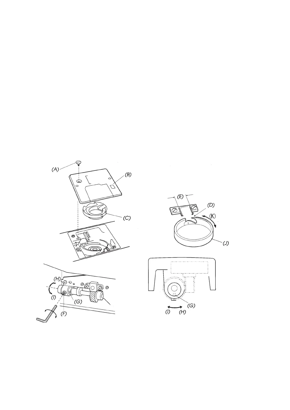 3. Rotate the hook race (I) clockwise and counterclockwise by hand and check the play. It