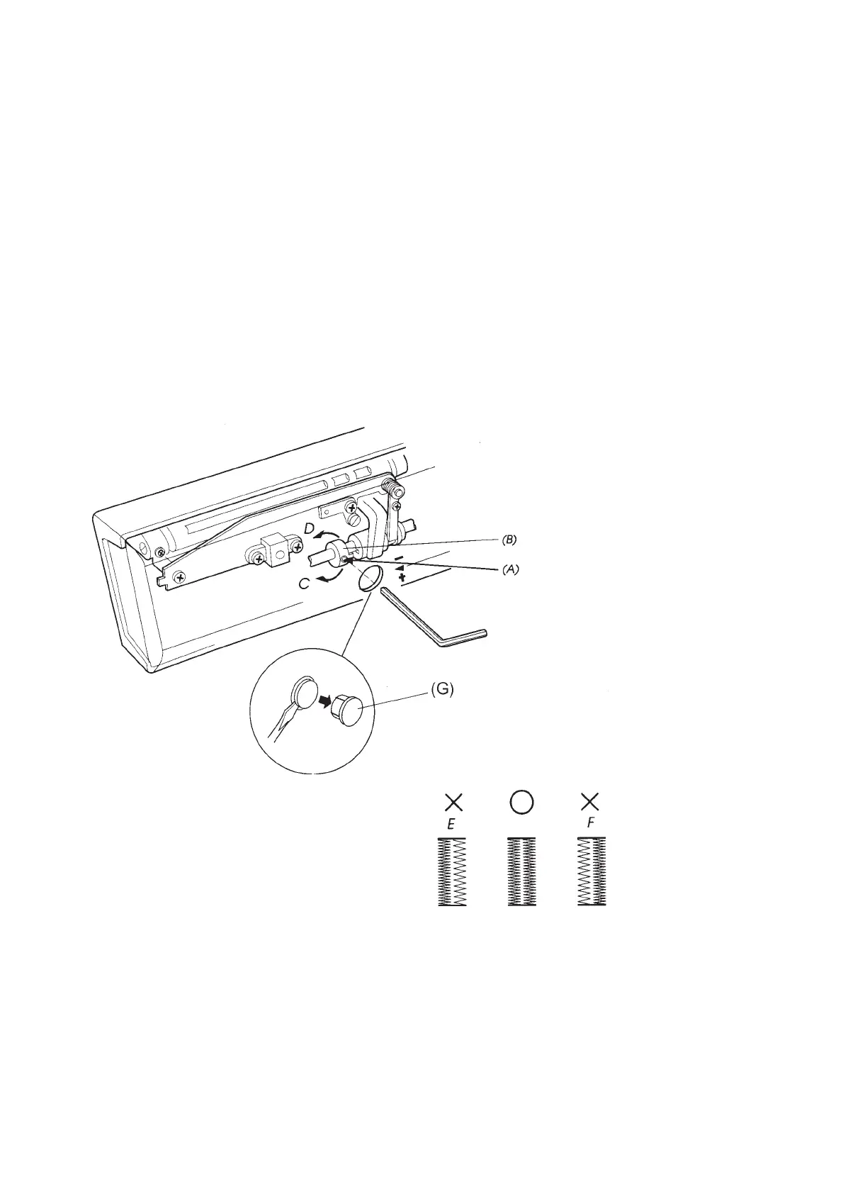 5. Tighten the hexagon socket screw of the feed cam ring, and attach the cap (G).