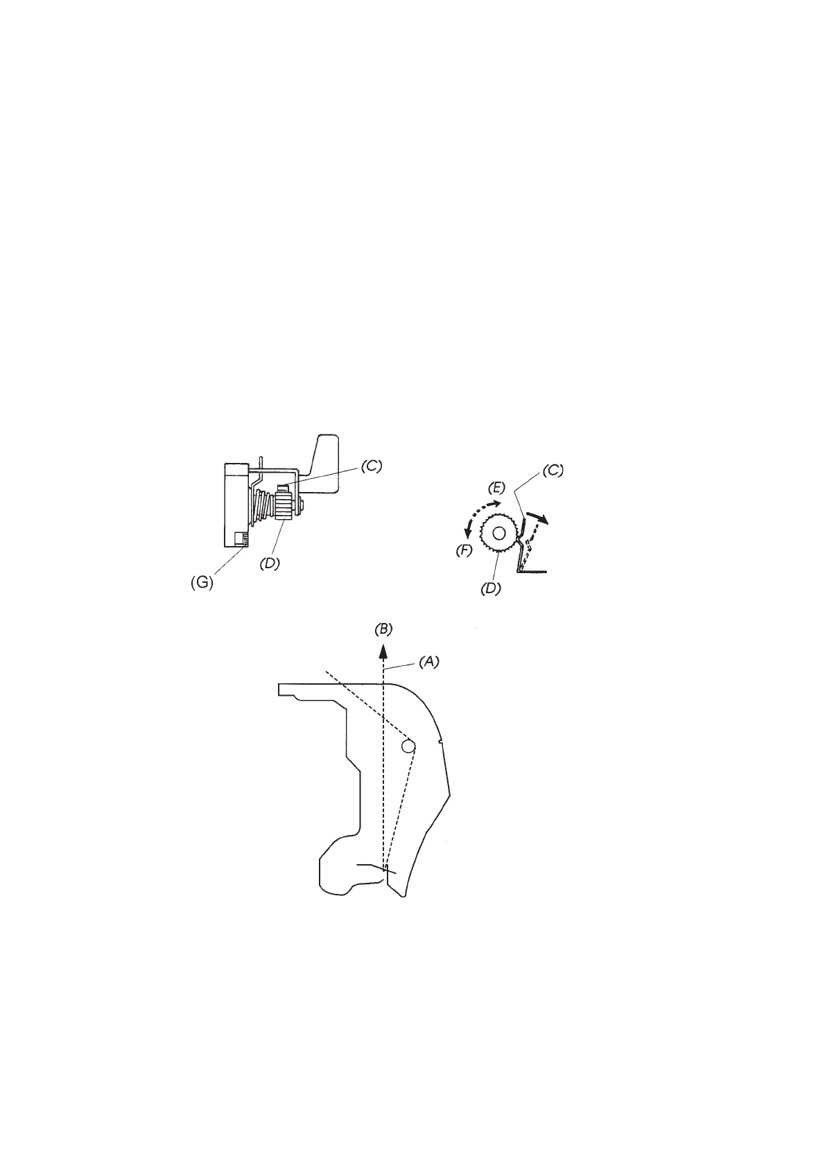 If the top tension is too tight, turn the lead screw (D) in the direction of (F).