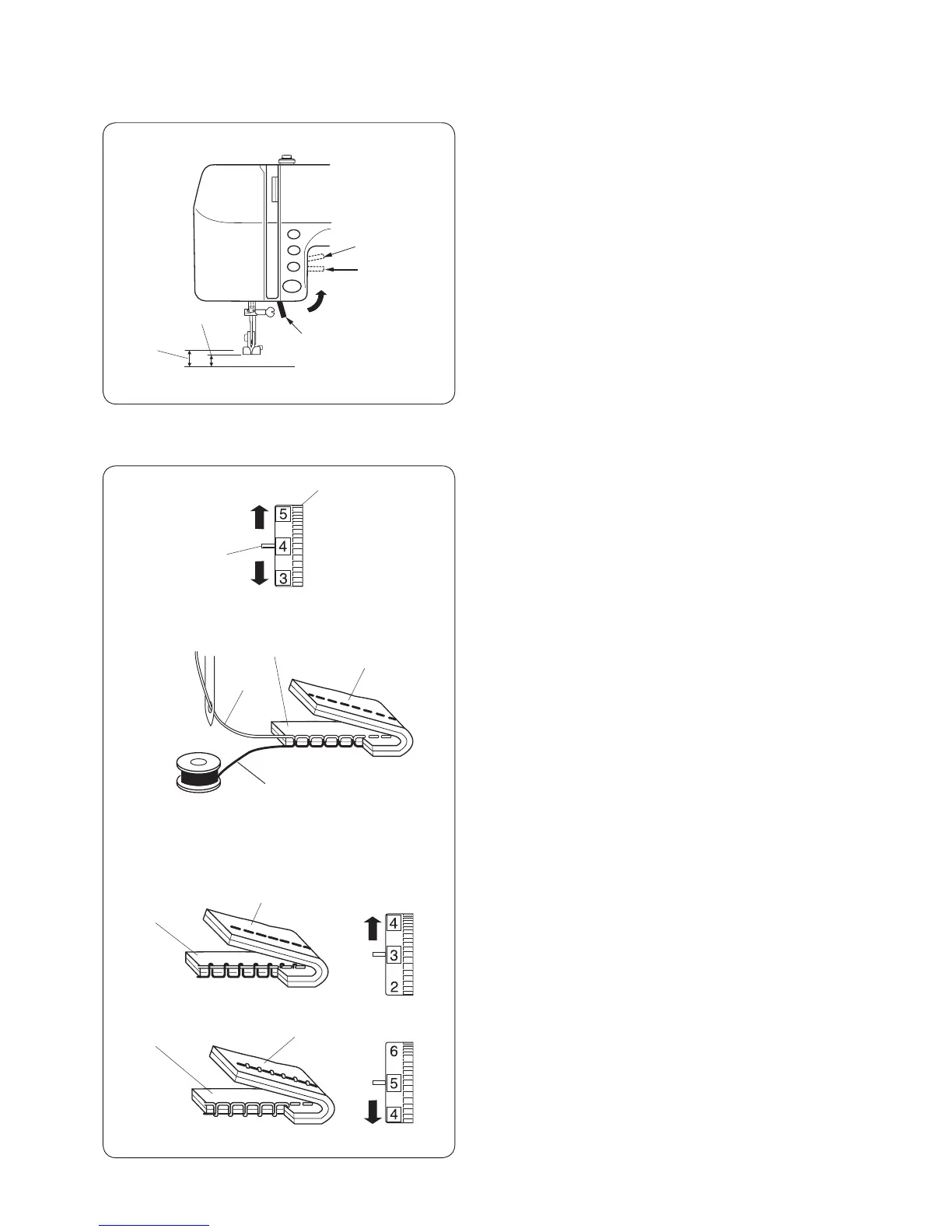 show on the right side of the fabric, and the needle