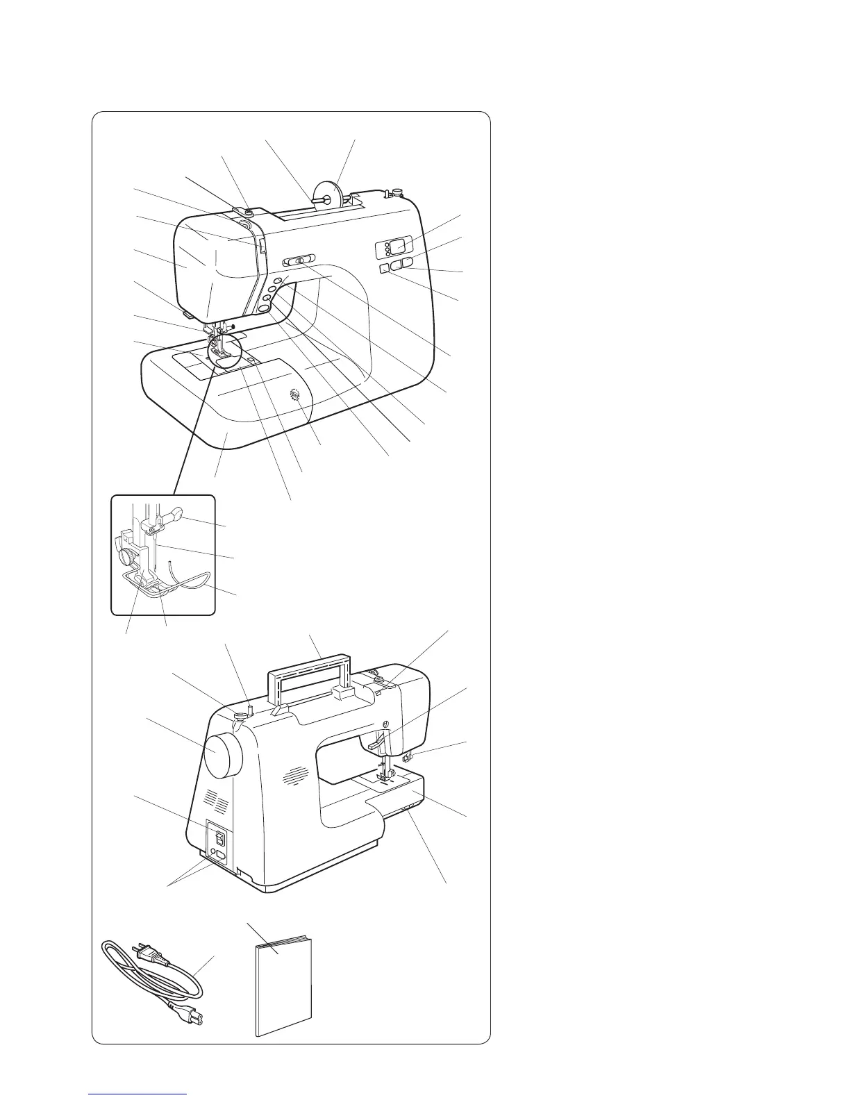 38. Hole for additional spool pin