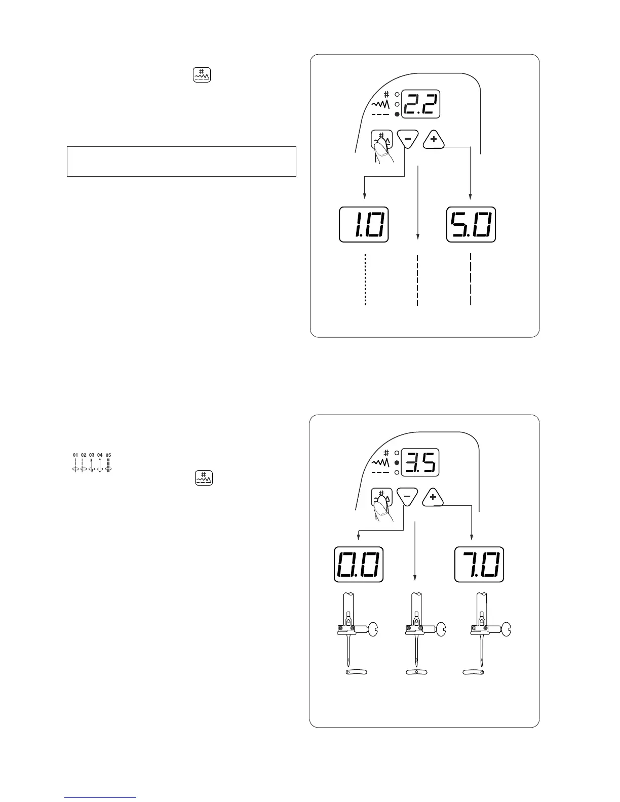 Press the Up (+) key to increase stitch length.