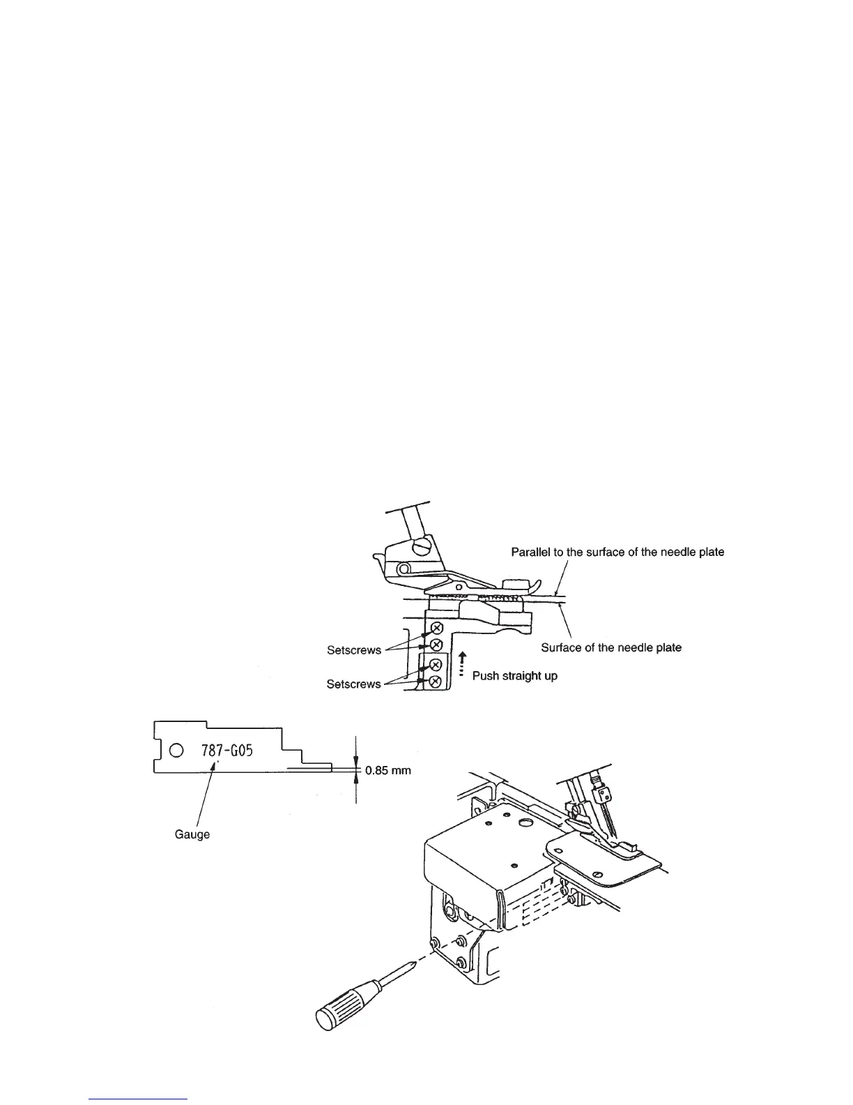 surface of needle plate and bottom of presser foot should be 0.75 to 0.95 mm.