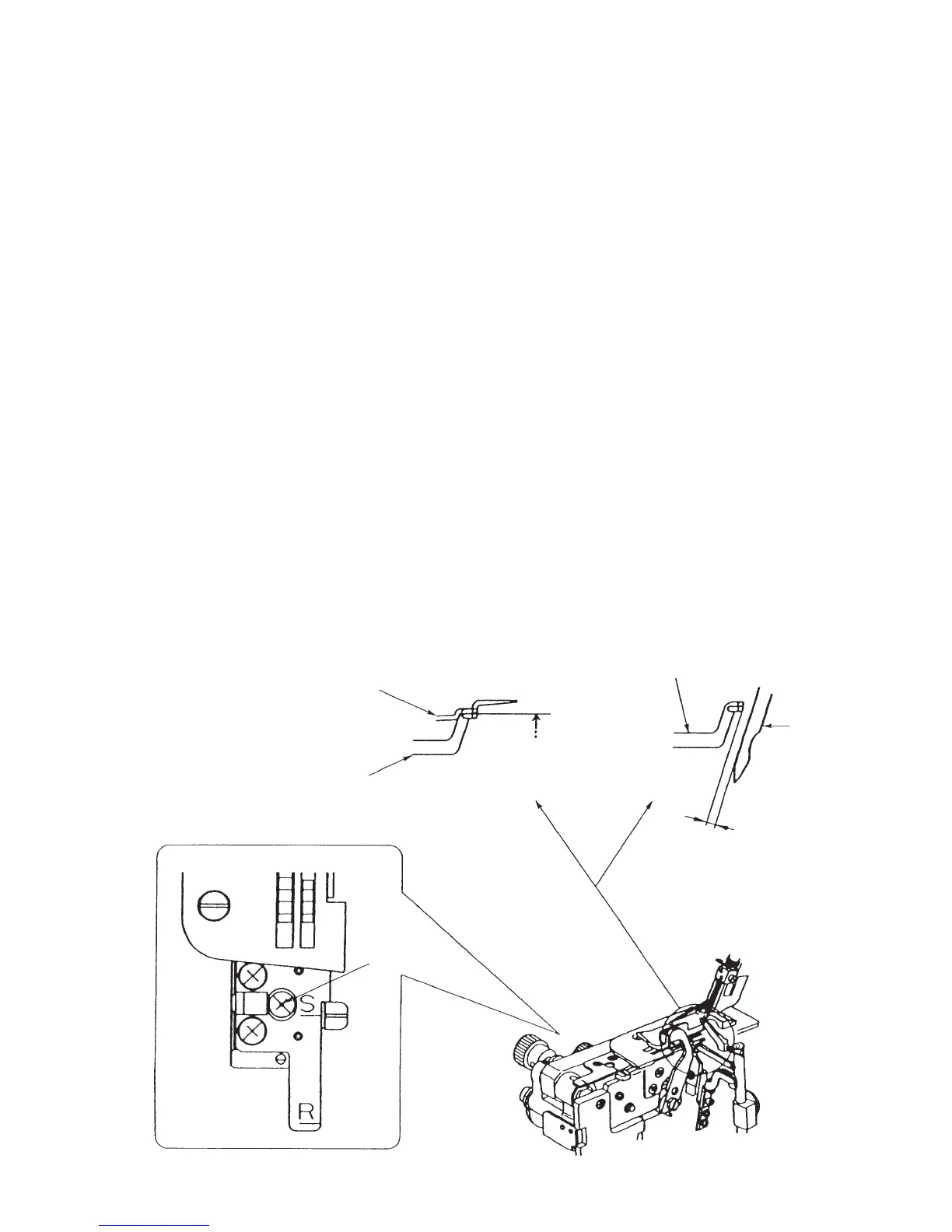 The clearance between the needle and the fixed needle guard should be 0.1 to 0.4 mm.