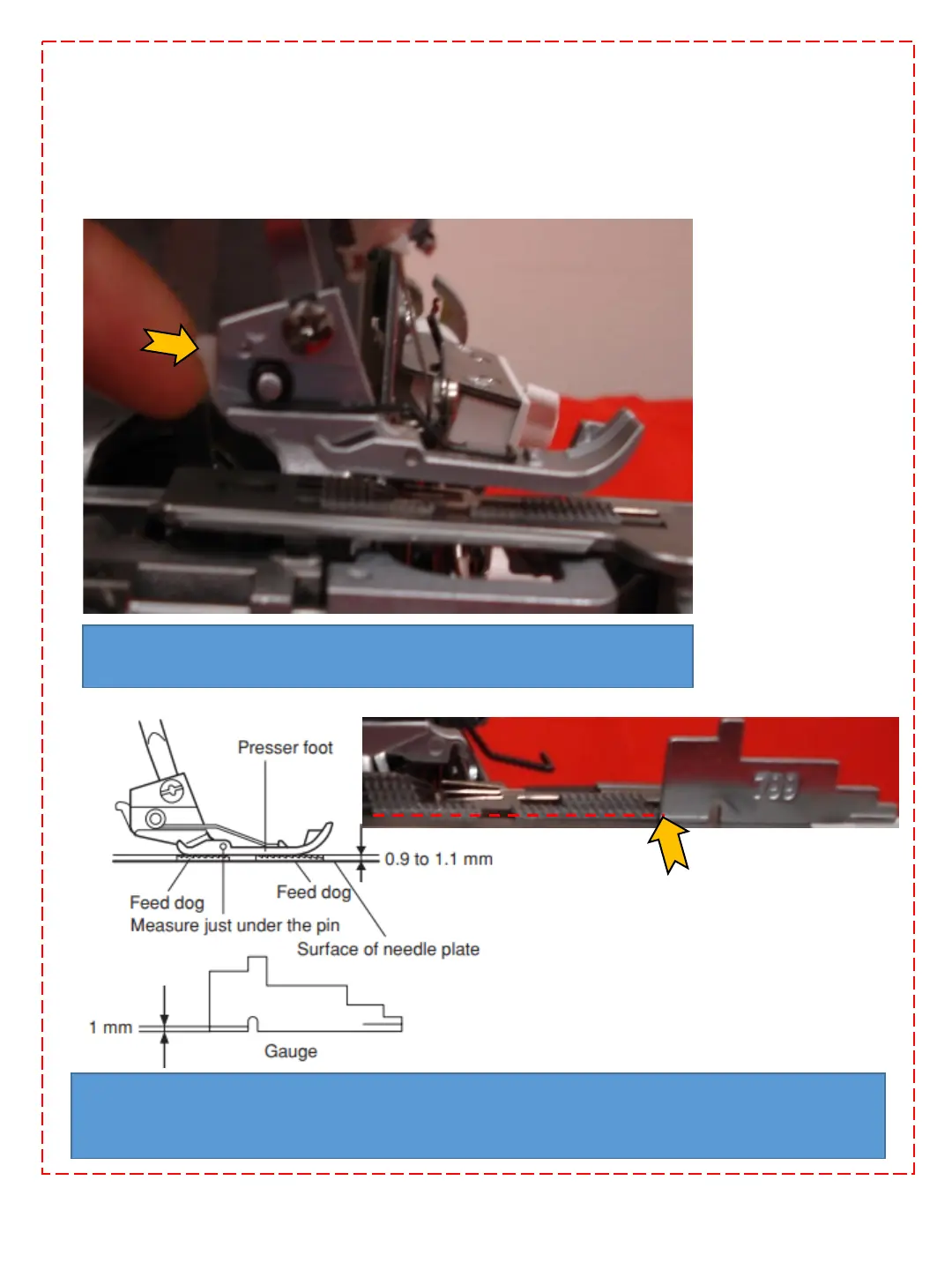 The highest position of main and sub feed dog should be between