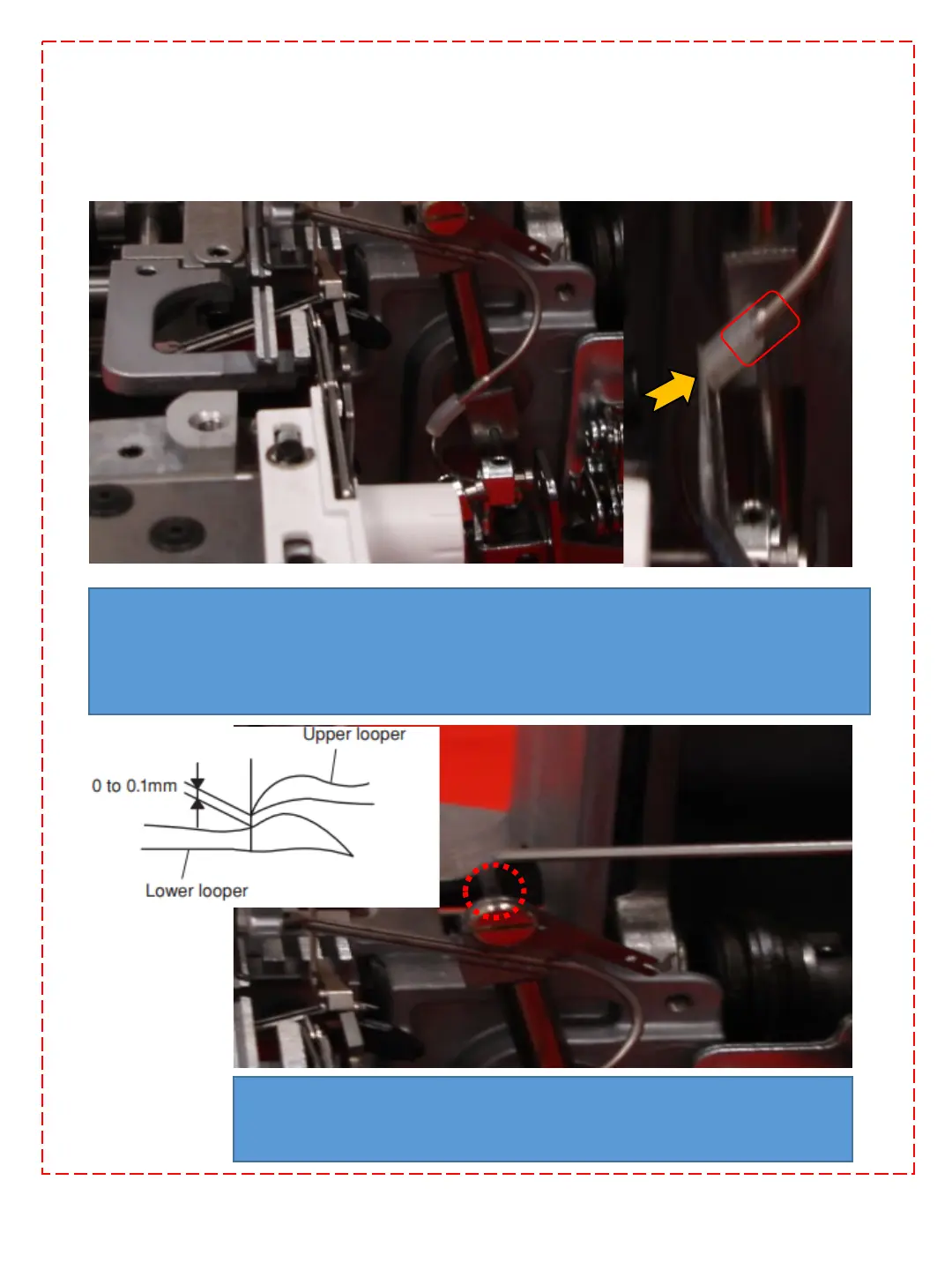 sure the upper looper does not hit the lower looper.
