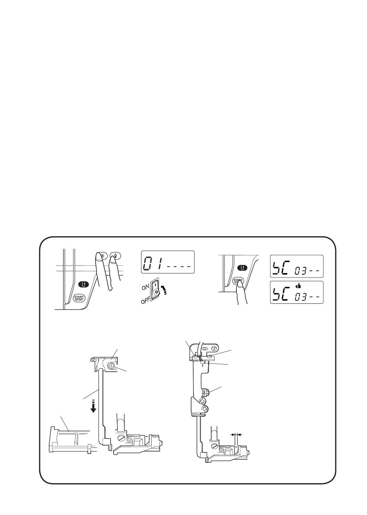 1. ENTER THE BUTTONHOLE SENSOR ADJUSTING MODE. (SEE BELOW. THE LCD SHOULD