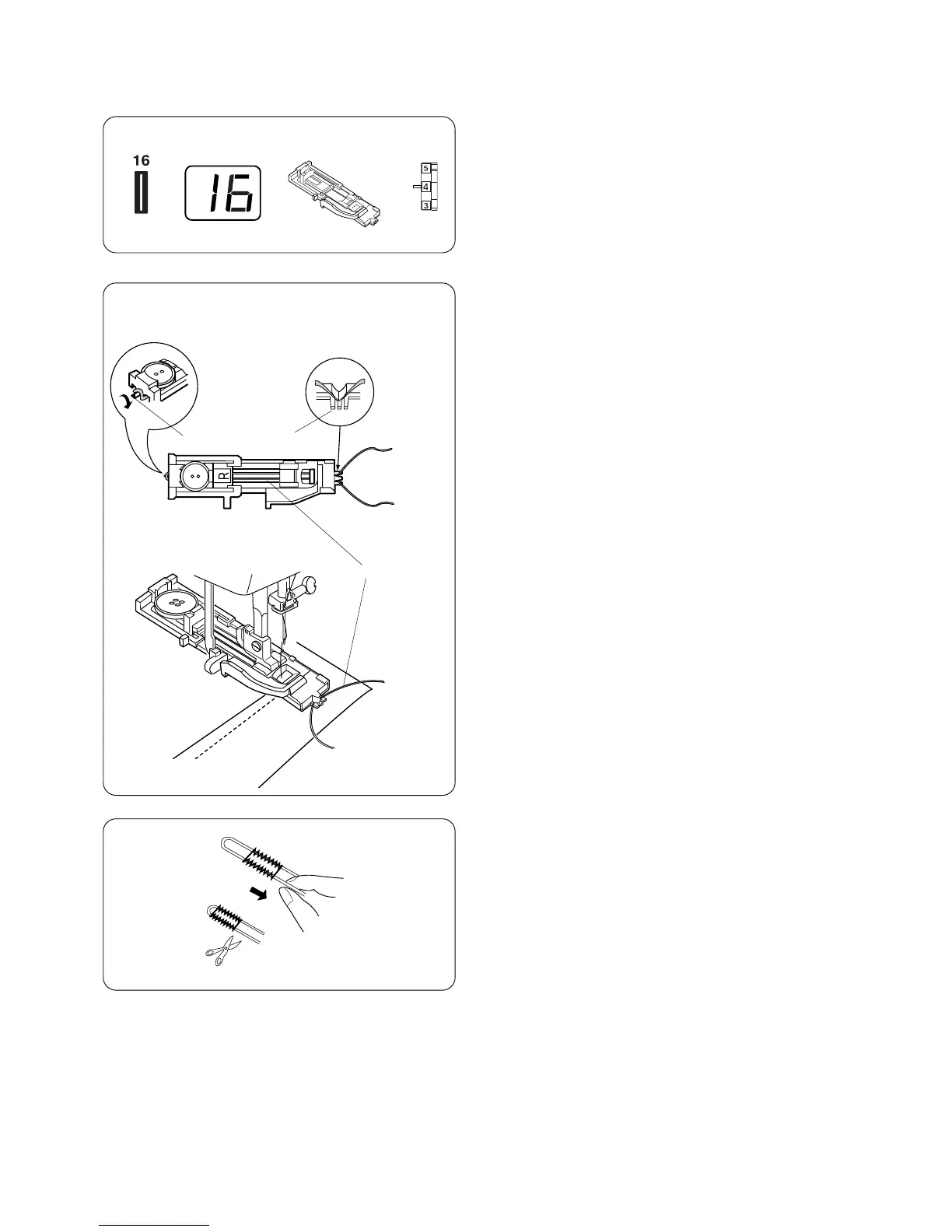 z With the automatic buttonhole foot R raised, hook