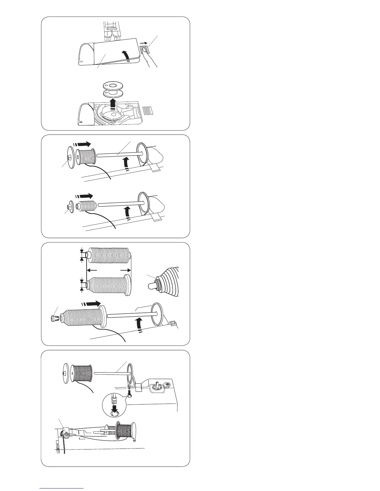 The additional spool pin q is for winding bobbins