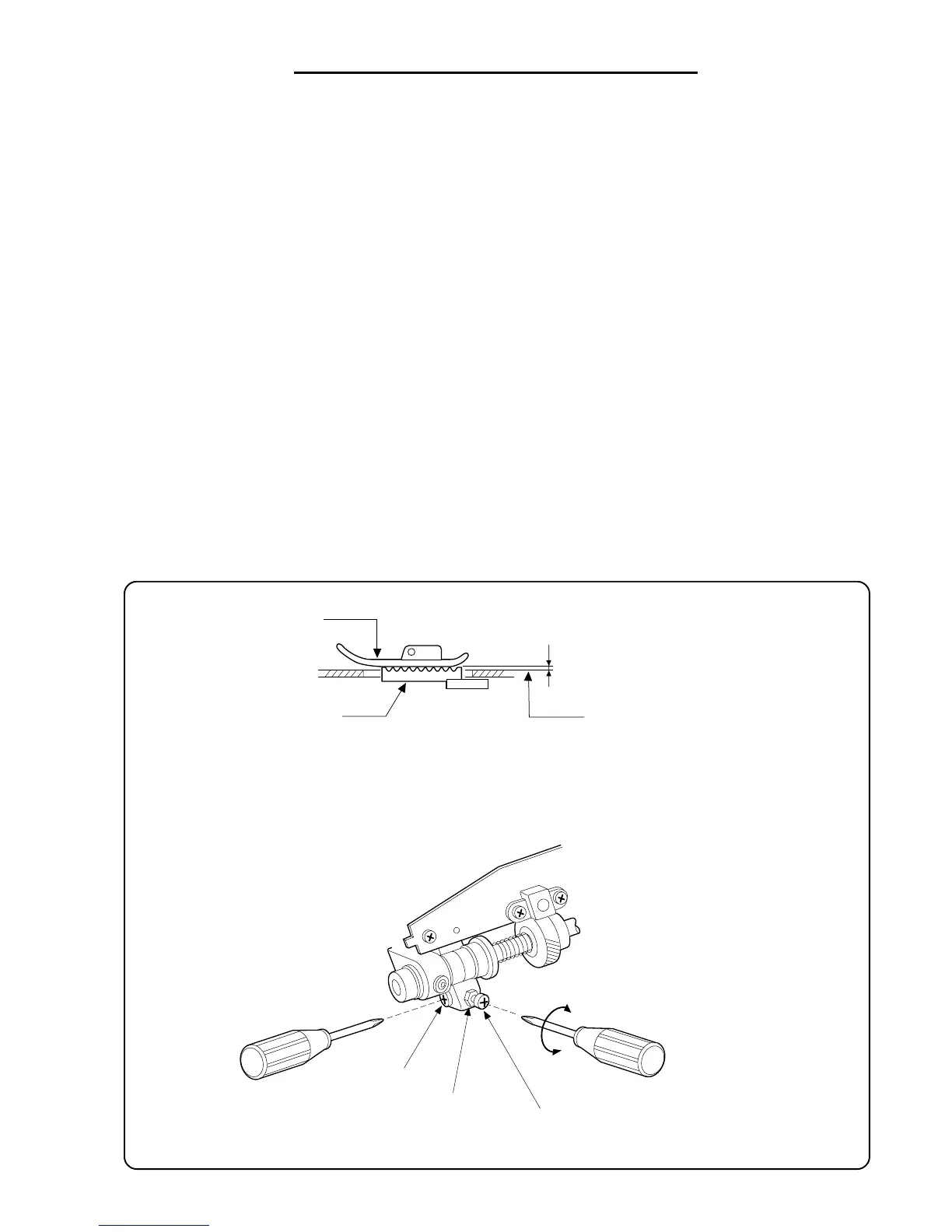 THE HIGHEST POSITION OF THE FEED DOG SHOULD BE BETWEEN 0.8 TO 0.9 MM FROM THE SURFACE OF