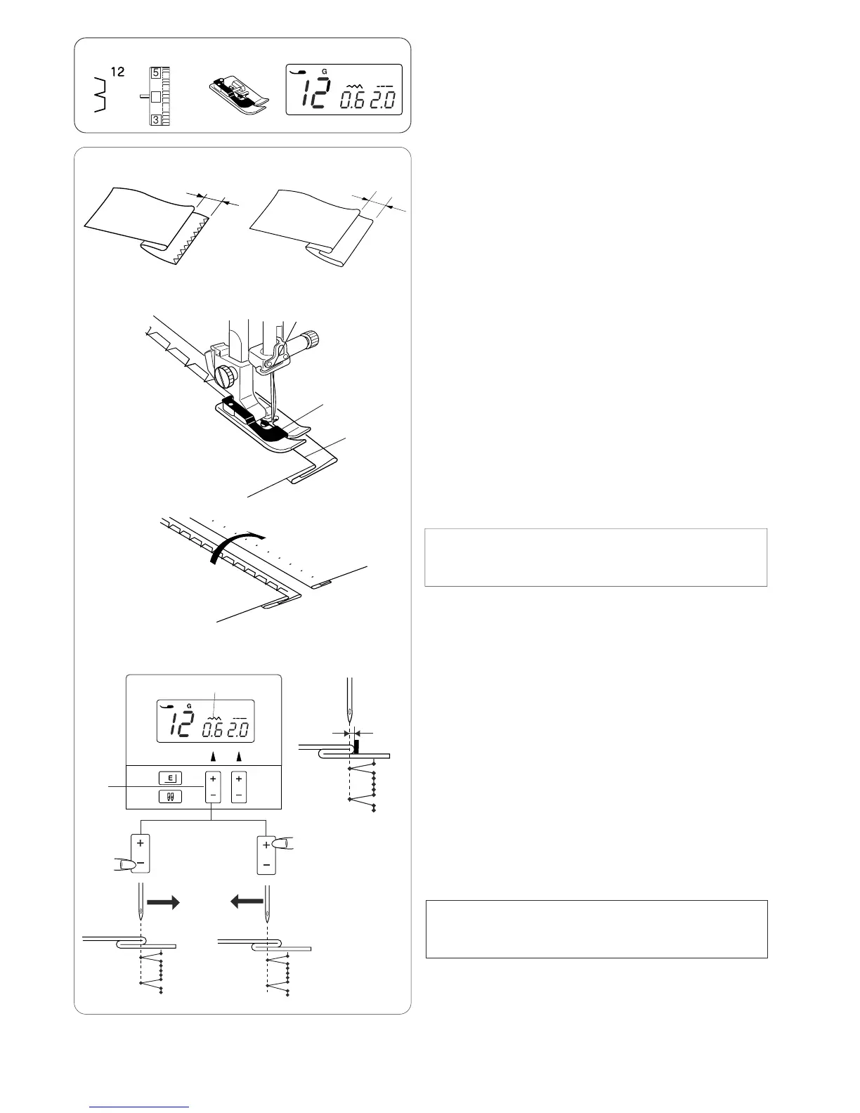 Press the “–” sign on the stitch width adjusting button to