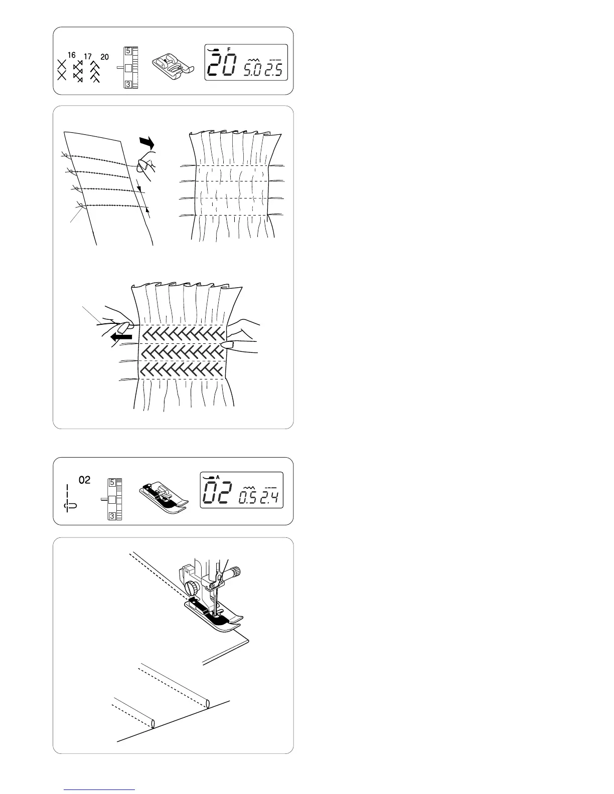Set the thread tension to 3–6 and select a smocking