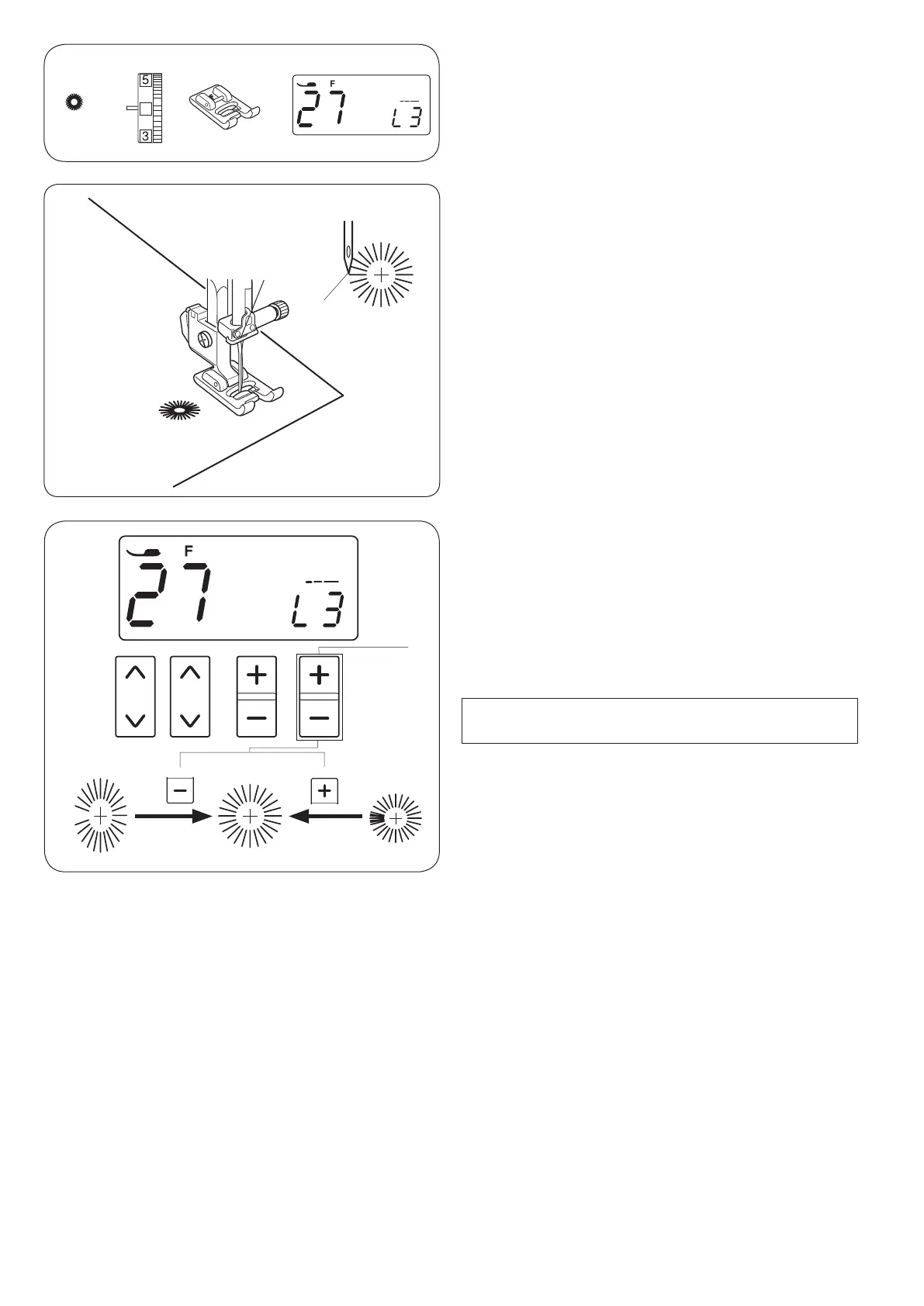 If the eyelet gap overlaps, press the “+” sign on the stitch