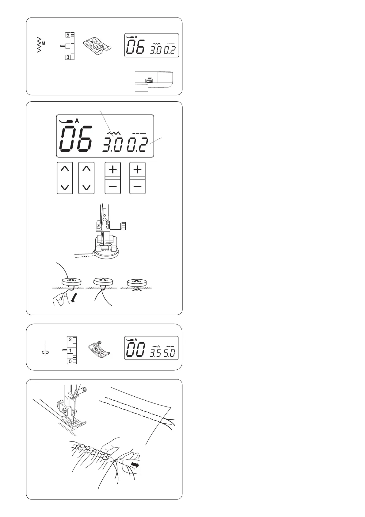 Loosen the thread tension to “1” and increase the stitch