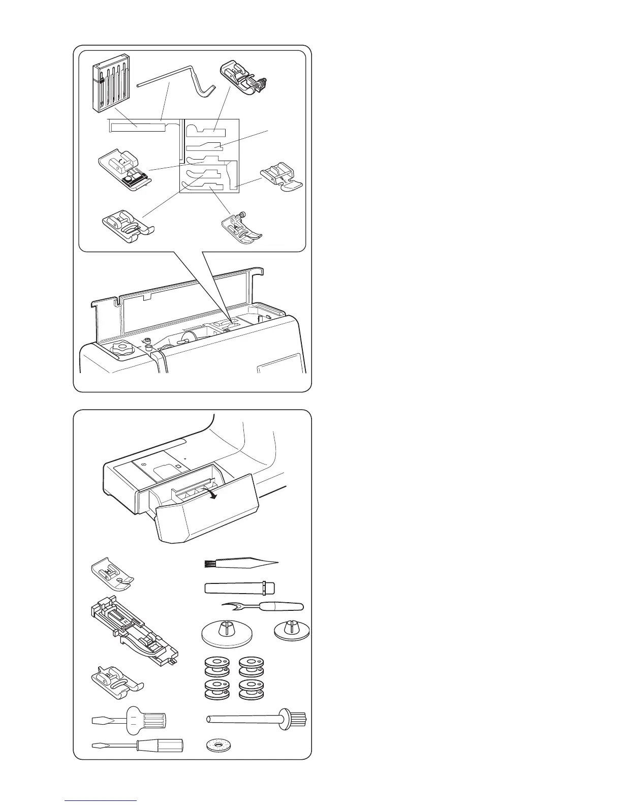 Each presser foot and pocket is lettered for easy
