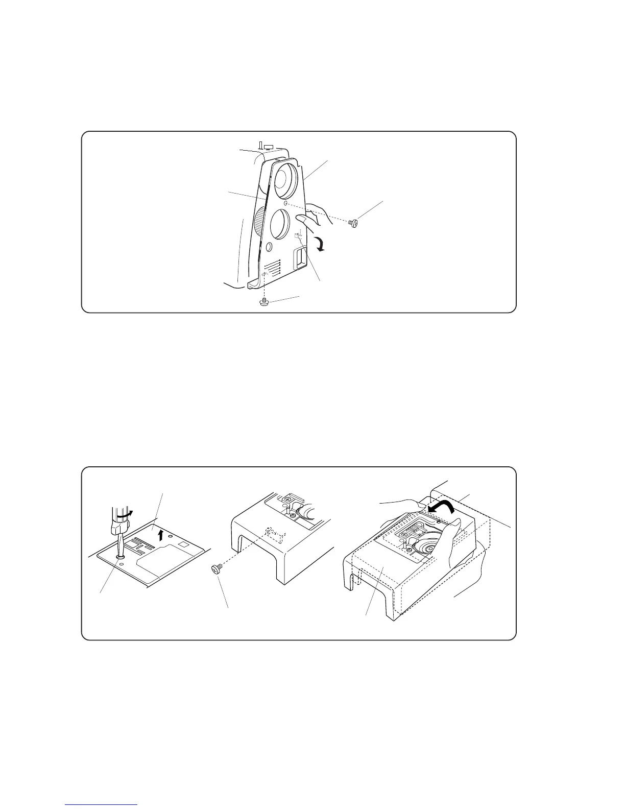 1. Remove setscrew (A) and the needle plate.