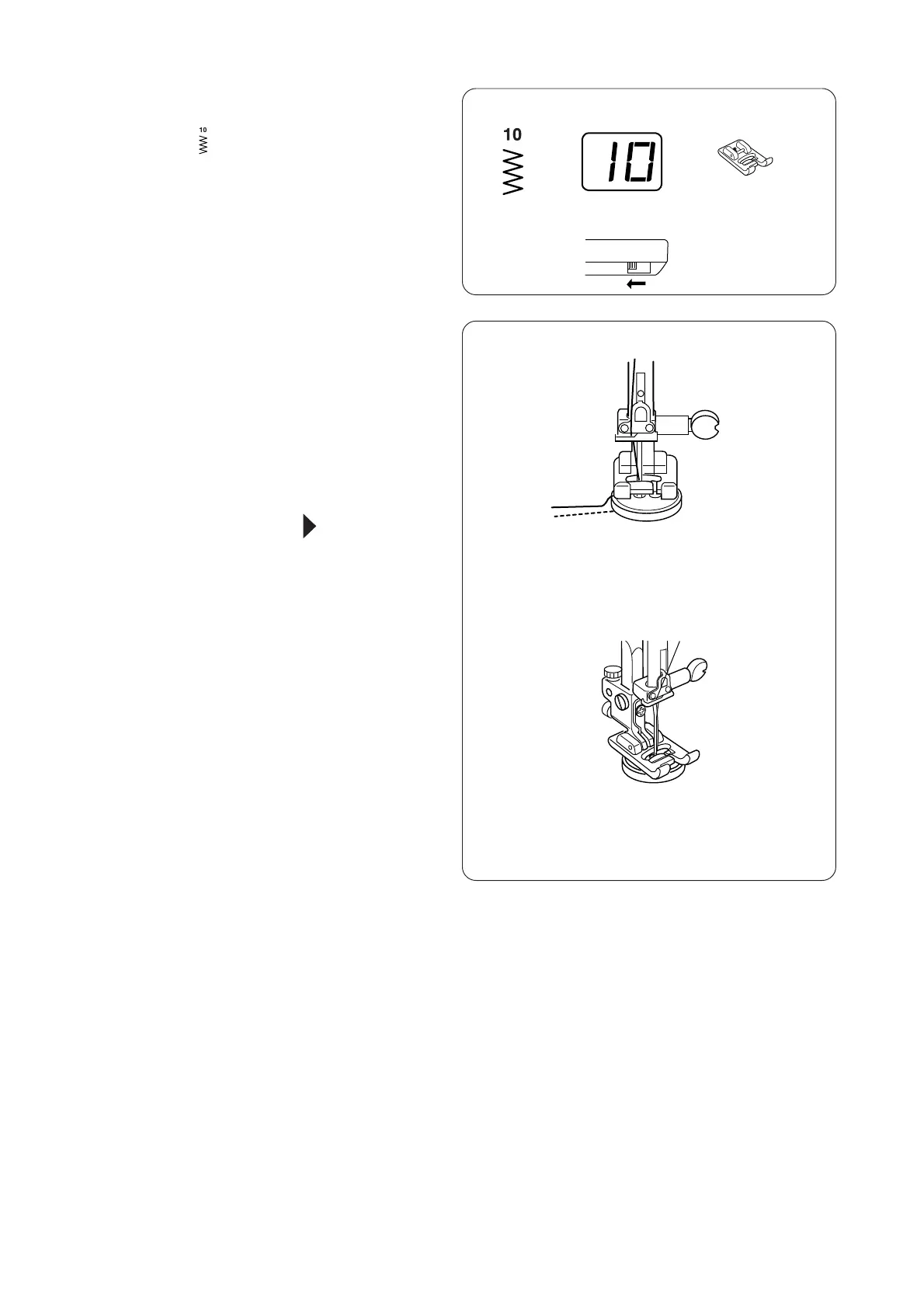 b Depress the foot control to sew 10 stitches and