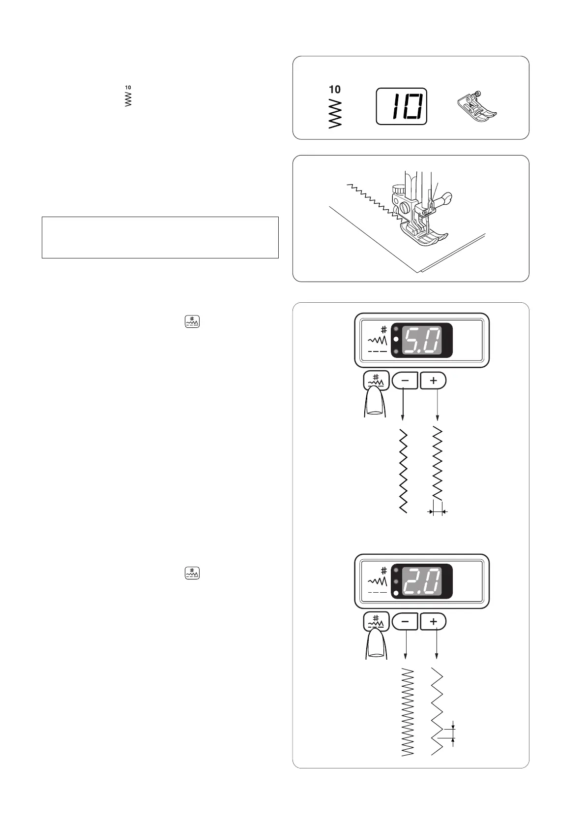 Press the Up (+) key to increase stitch length.