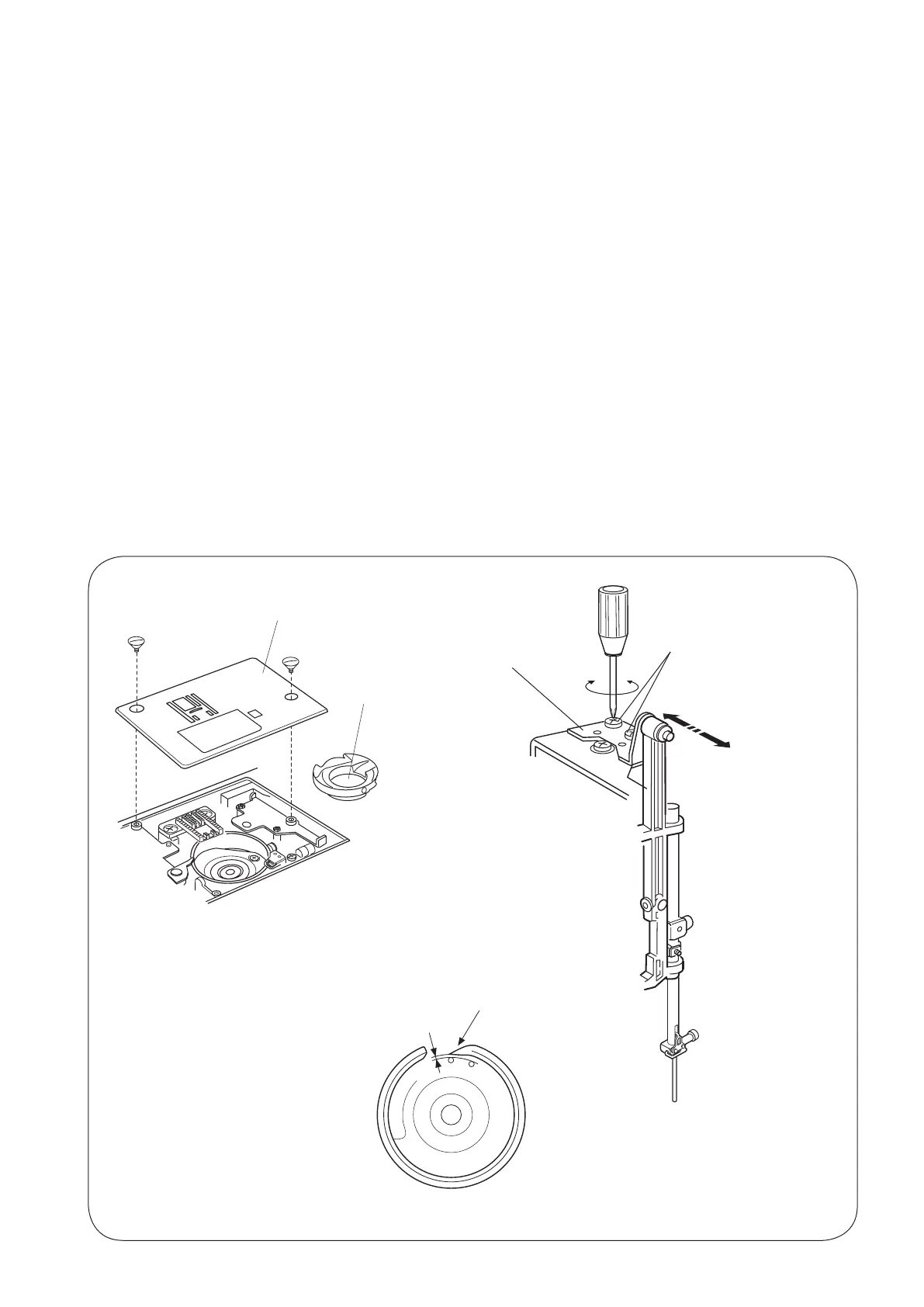 7. Checktheclearancebetweentheneedleandtheedgeoftheneedleholeintheneedleplate(seepage9).