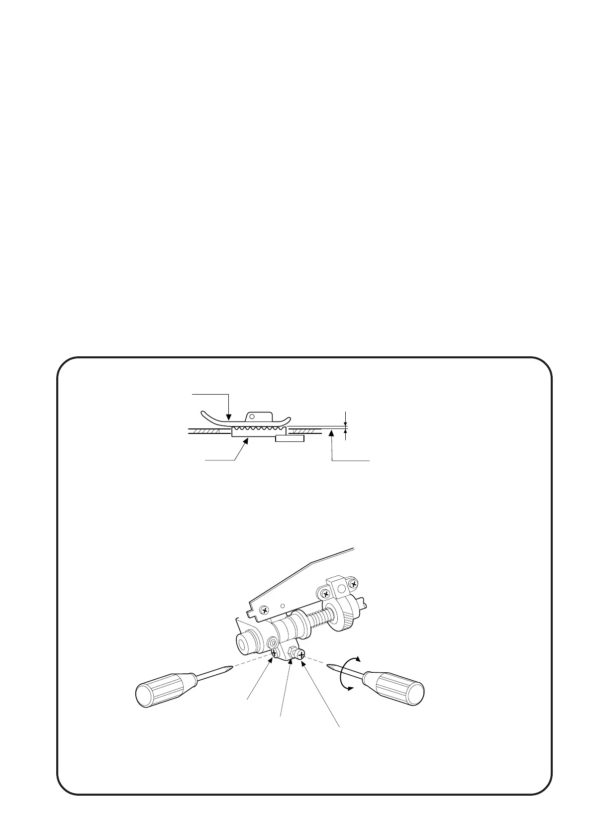 The highest position of the feed dog should be between 0.80 and 0.90 mm from the surface of the needle plate.